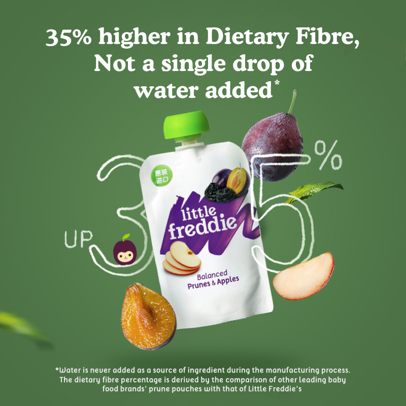 Introducing this delicious double act: Prunes & Apples.We blind taste-tested prunes from five farms in three countries before selecting our richer, darker and more decadent prunes from the Serbian Kapaonik mountains.We blend them with crisp, fresh-tasting apples to balance the flavour and complement the caramel flavour of the prunes.This recipe is the perfect introduction to fruit flavours and a great source of fibre to help get things moving.