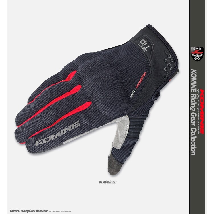 New arrival Komine GK-183 Protect Mesh Gloves BRAVE Touch Screen Gloves Size: M:7.5-8.5cm /L:8.5-9.5cm /XL:9.5-11cm Description Ideal combination of protection and mesh for pleasant summer ride Features ・special synthetic leather sewn for touch panel operation ・COOLMAX® used on finger joints ・foam padding ・foam padding with keprotec® patch ・lnner knuckle protection ・finger guard ・reflective logo for night safety ・airthrough Liteprene panel ・velcro closure Color : BLACK Black /dark grey BLACK/RED BLACK/YELLOW Black/Neon