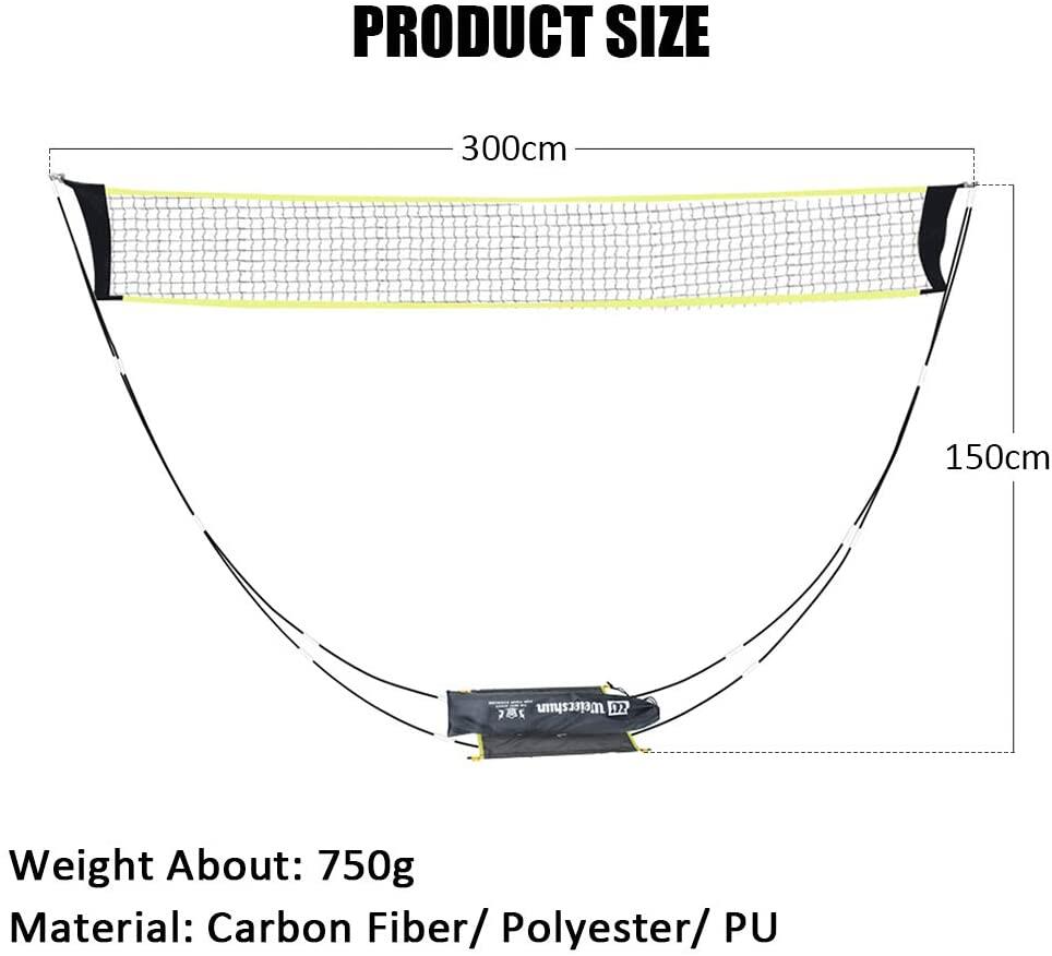 Simple Design: The badminton net is portable, foldable and lightweight, the package size is about 60cm, the set is only about 750g. Open size: 300cm x 150cm. You can bring the fun anywhere. (ONLY NET)