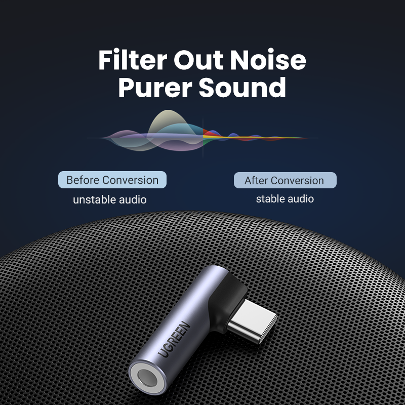 UGREEN USB C to 3.5mm Audio Headphone Jack Adapter Type C Aux Earphone Stereo Mic HiFi Right Angle Dongle for Headphone, Car Stereo, Speaker(No DAC)
