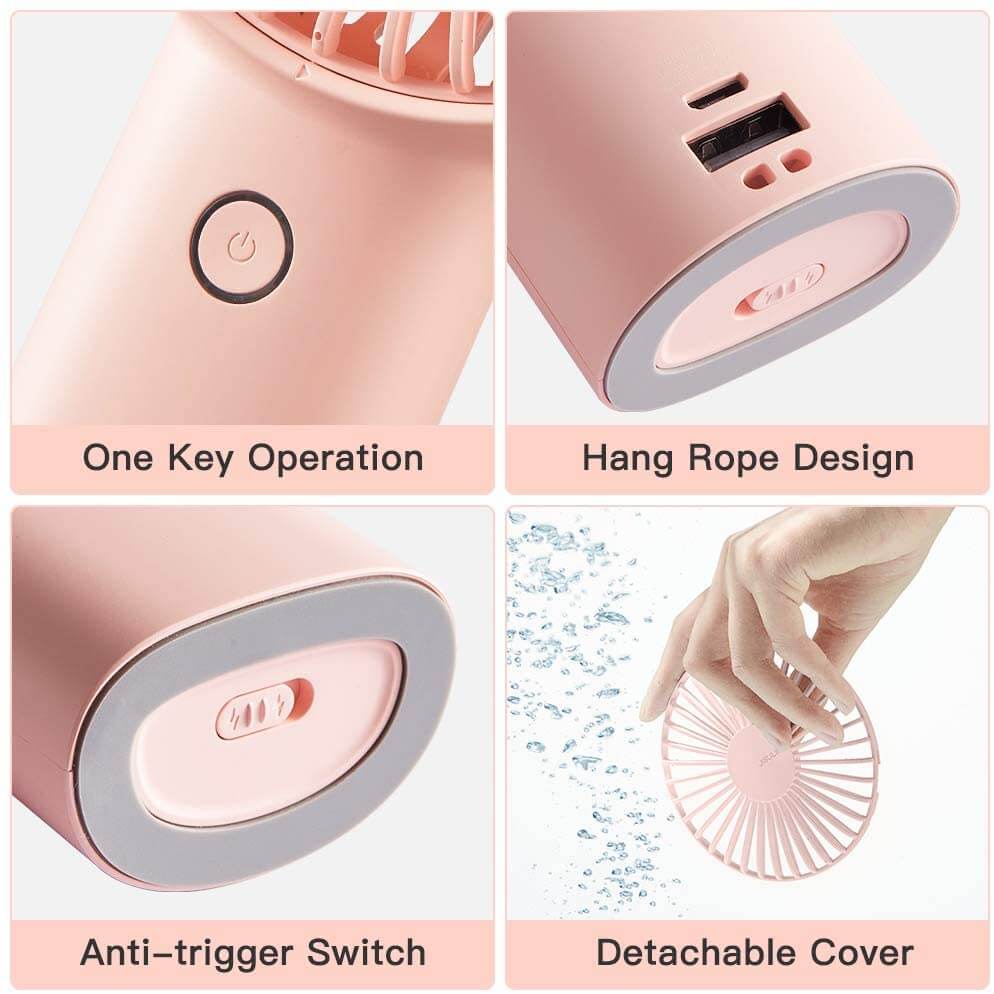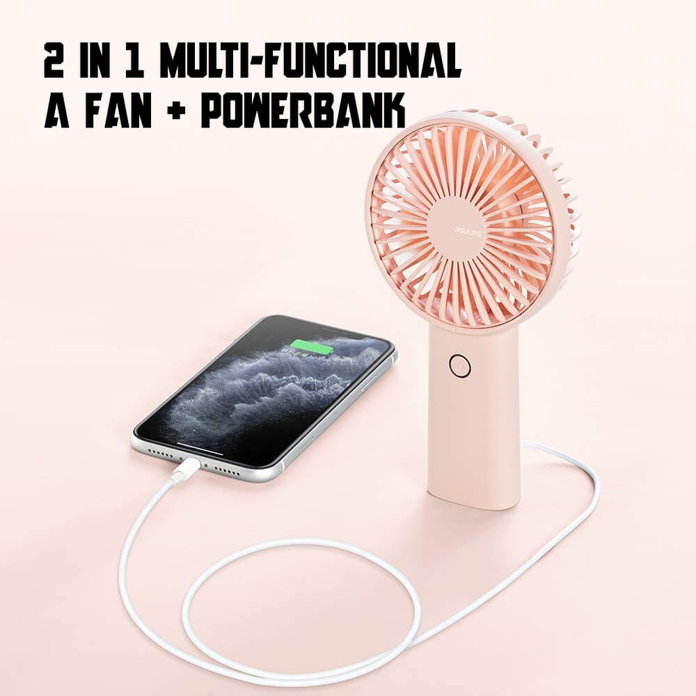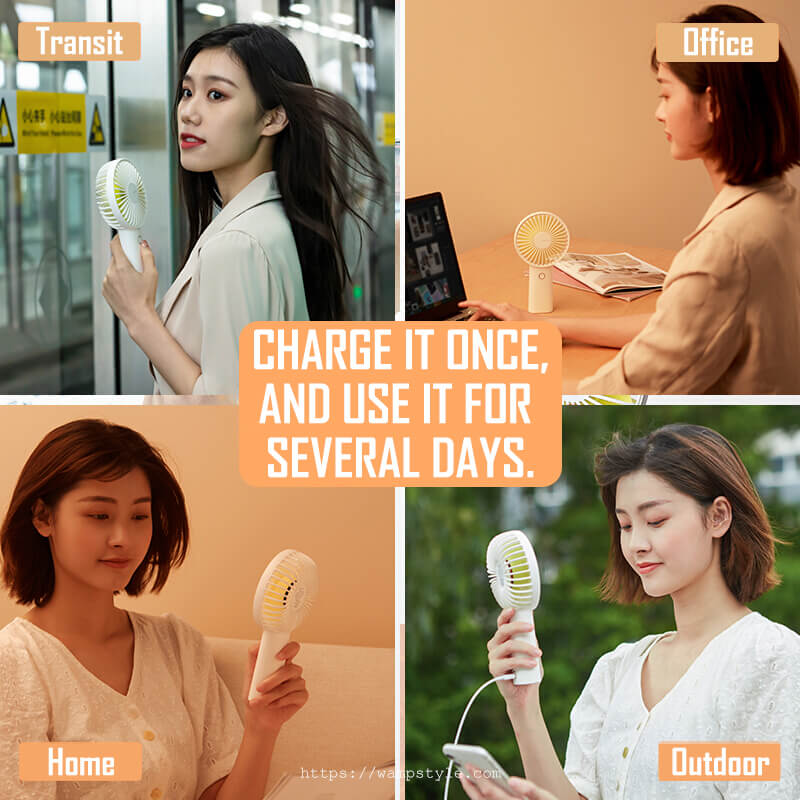 With the unique design, this USB rechargeable handheld fan performs a dual purpose of keeping you cool and charging your phone. It can either be desktop desk fan or a handheld fan to satisfy your different needs with cool stable design.