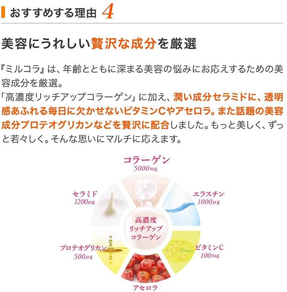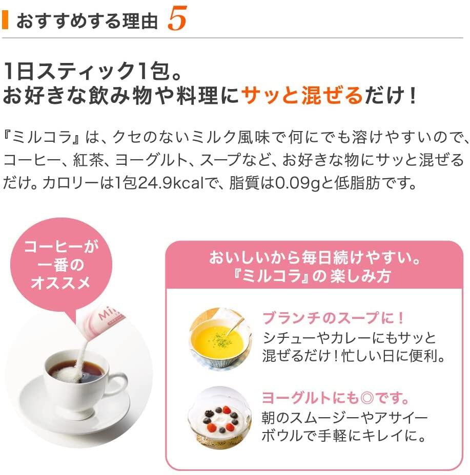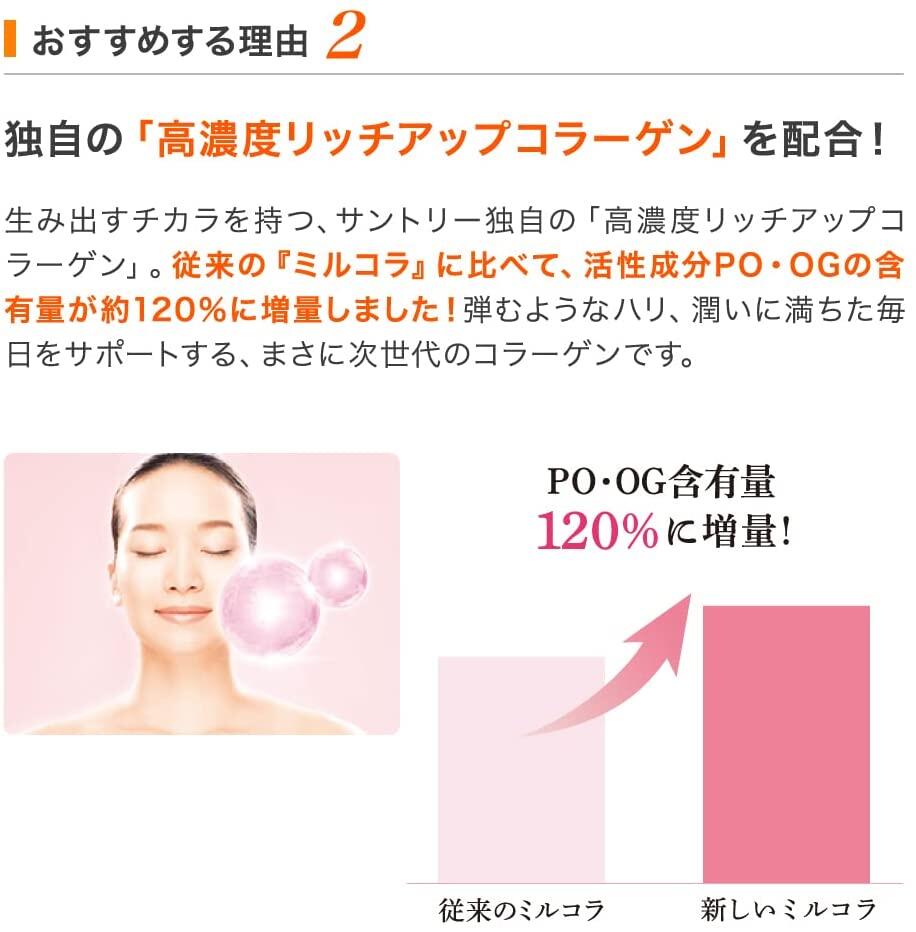 1. Are seeking to maintain our beauty as we age. The Milcolla collagen contains highly effective, concentrated collagen ingredients that have been researched and developed by Suntory.