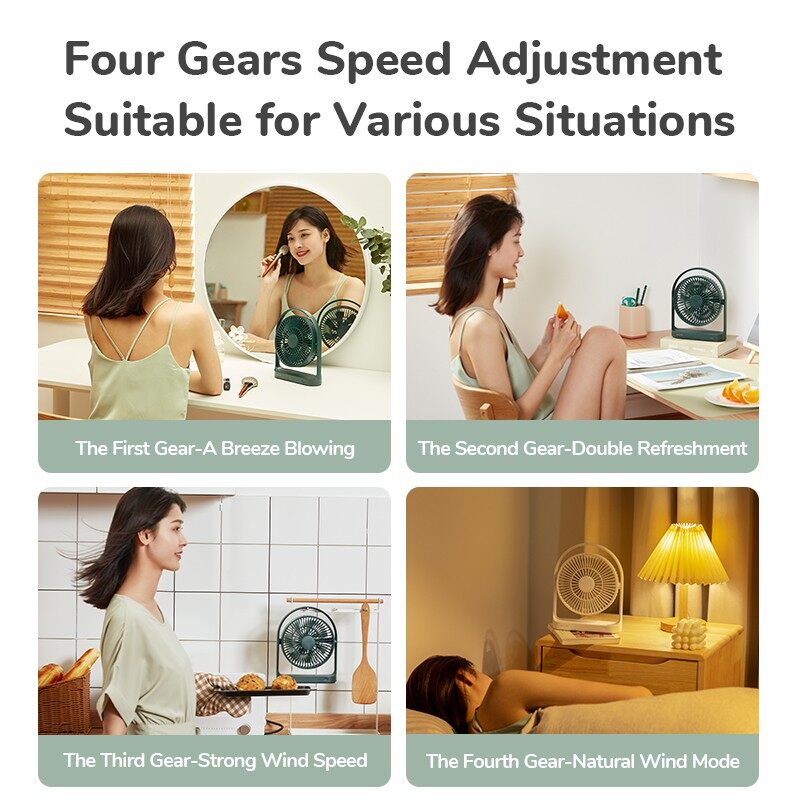 JISULIFE Table Fan Mini USB Kipas Meja Strong Wind Rechargeable Desk Wireless 4000mAH with 4 gear Wind Speed 270 Degree Rotatable Portable Compact and Exquisite fans produce natural wind