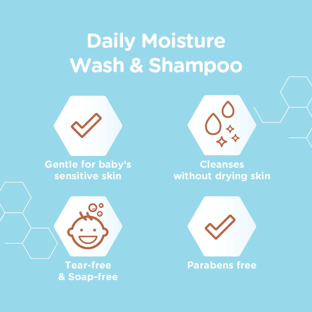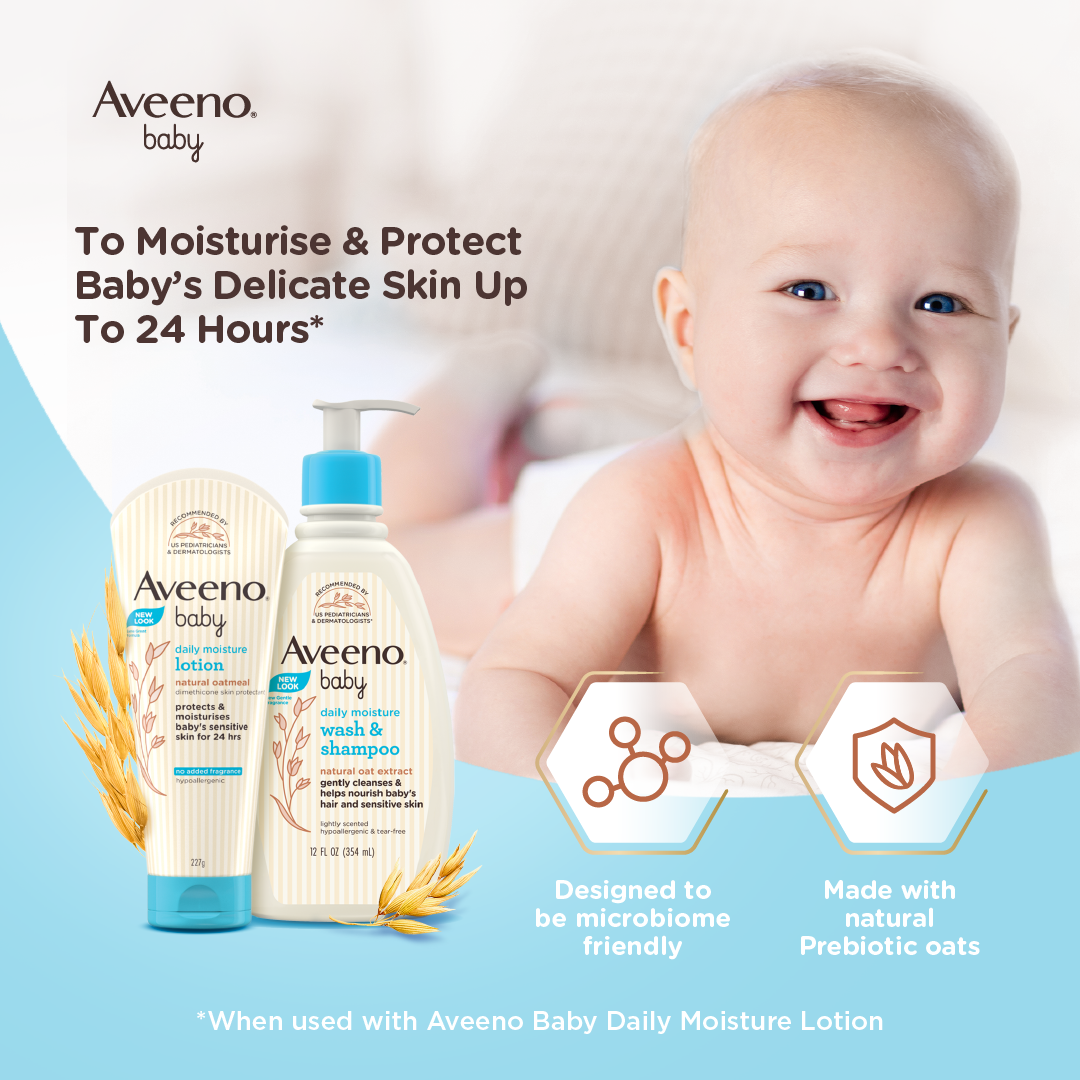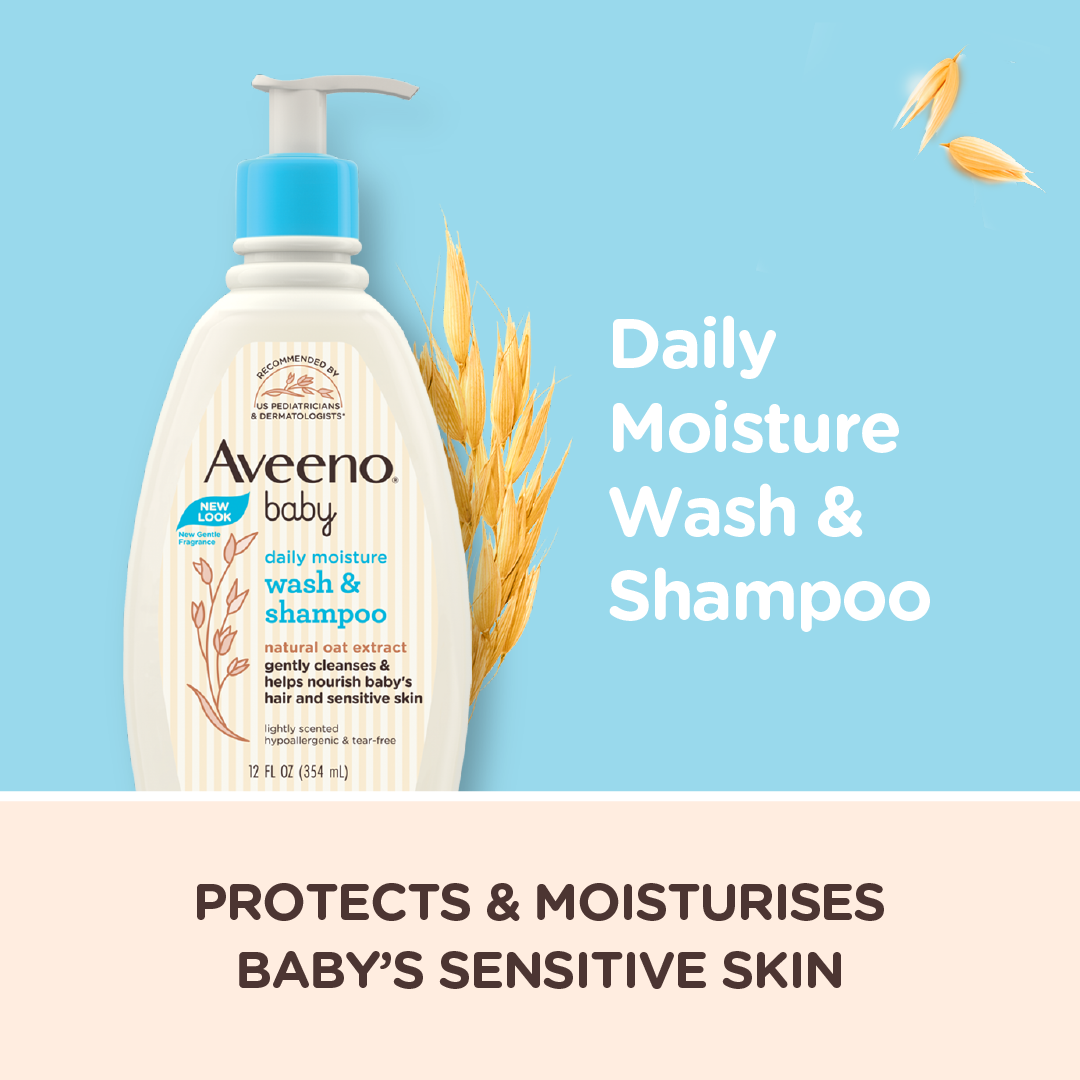 All the clean your baby needs in one gentle formula. Made for babies with sensitive skin, this baby wash and shampoo cleanses without drying. AVEENO® Baby Wash & Shampoo contains natural oat extract, known for its soothing and nourishing properties. And the rich lather rinses clean, leaving a light, fresh fragrance.