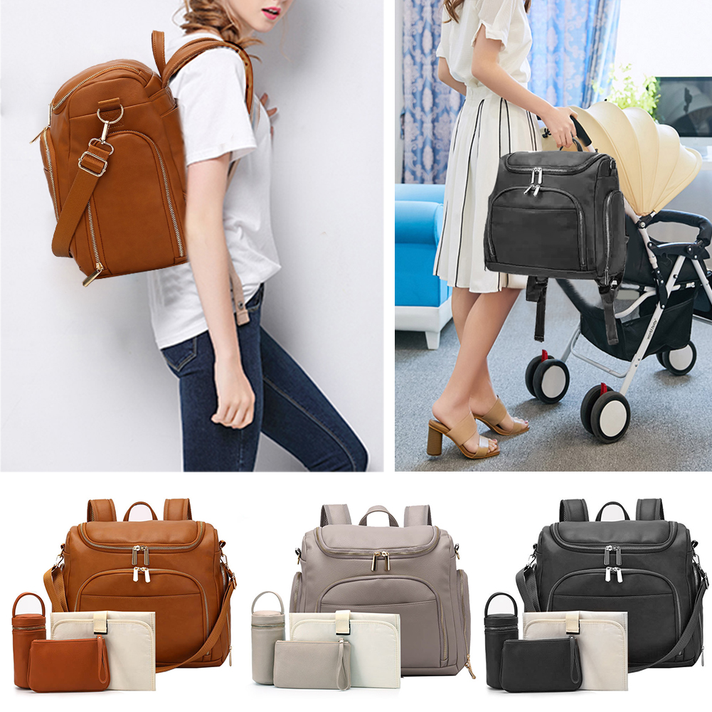 7-in-1 Baby Diaper Bag Solid PU Leather Mummy Maternity Bag Large Capacity Travel Back Pack Stroller Bags