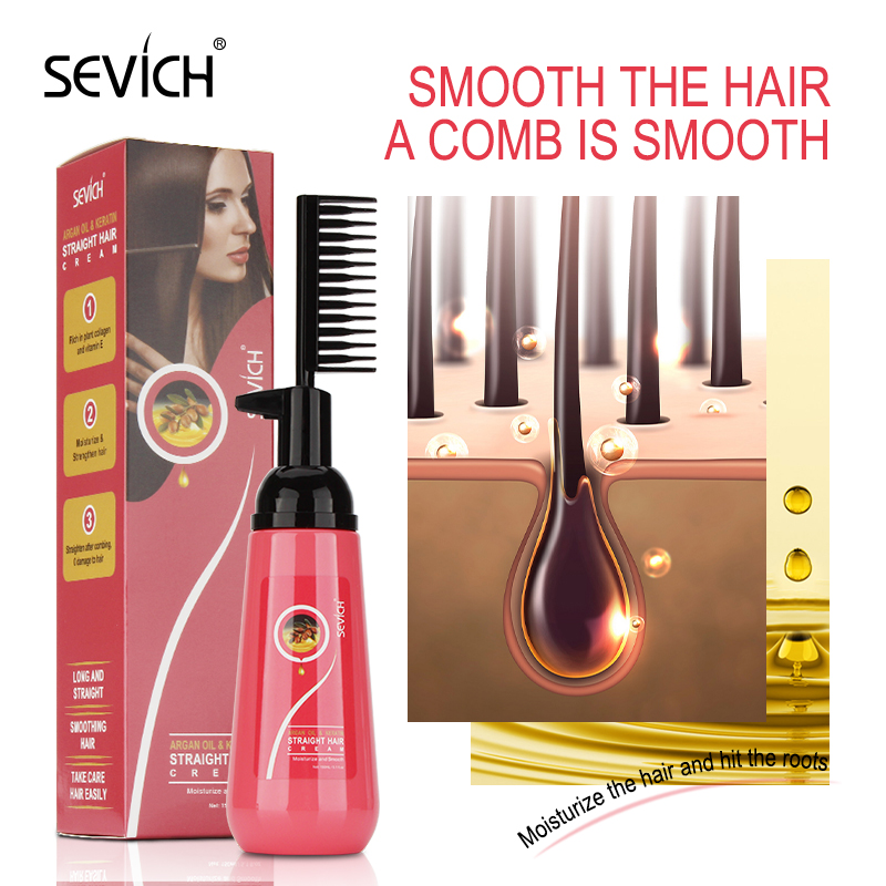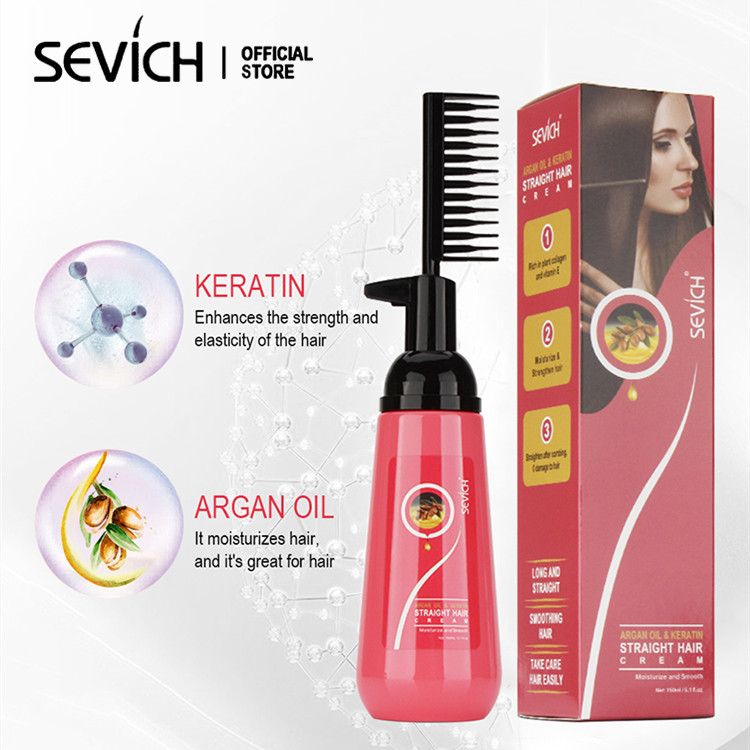 SEVICH Hair Straightener Cream Keratin Hair Straighten Comb 150ml Argan Oil Permanent Straightening Hair