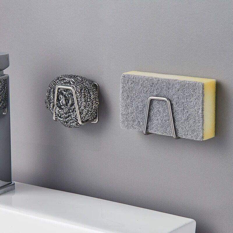 Kitchen Stainless Steel Sink Sponges Holder Self Adhesive Drain Drying Rack Kitchen Wall Hooks Accessories Storage Organizer