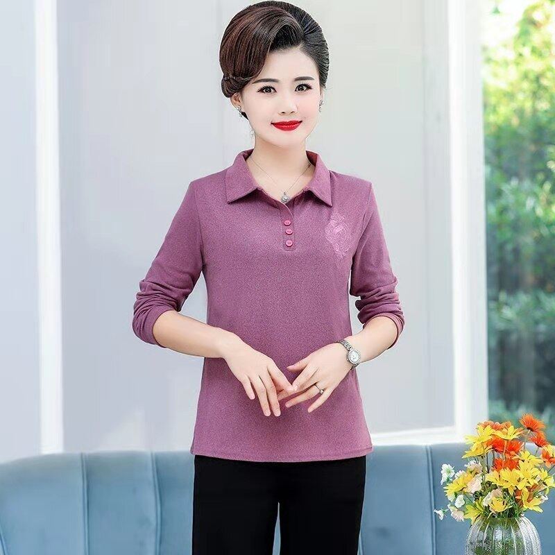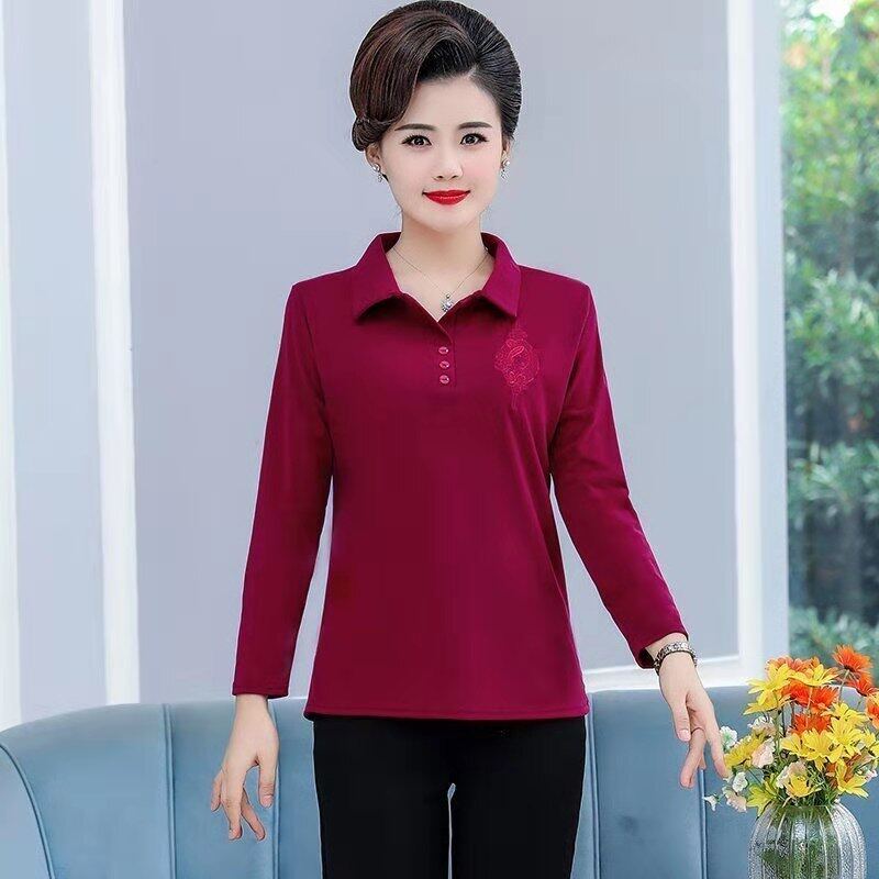 New Long-sleeve Lapel Polo Shirt Middle-aged Embroidered Casual Bottoming T-shirt