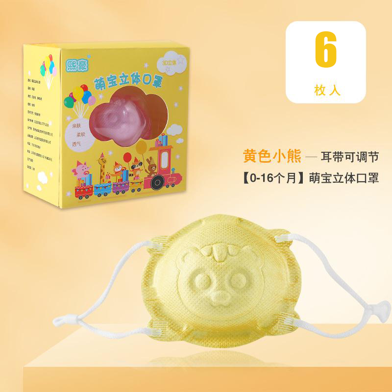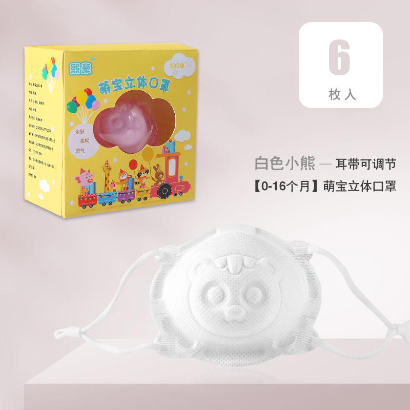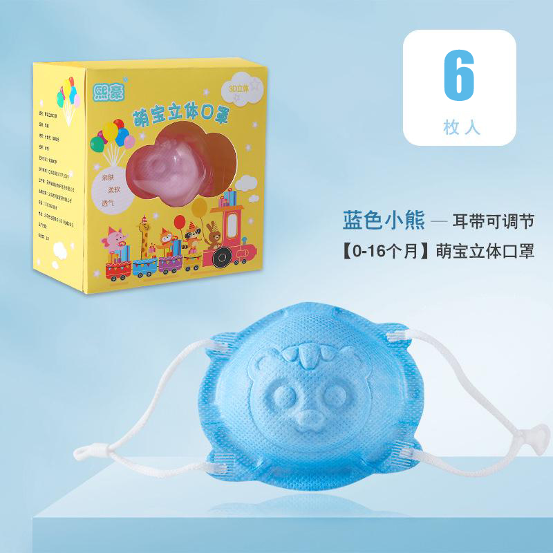 6PCS 0-18 months baby maskes 0-3 kids 3D stereo cartoon disposable baby Newborn face shield for covids