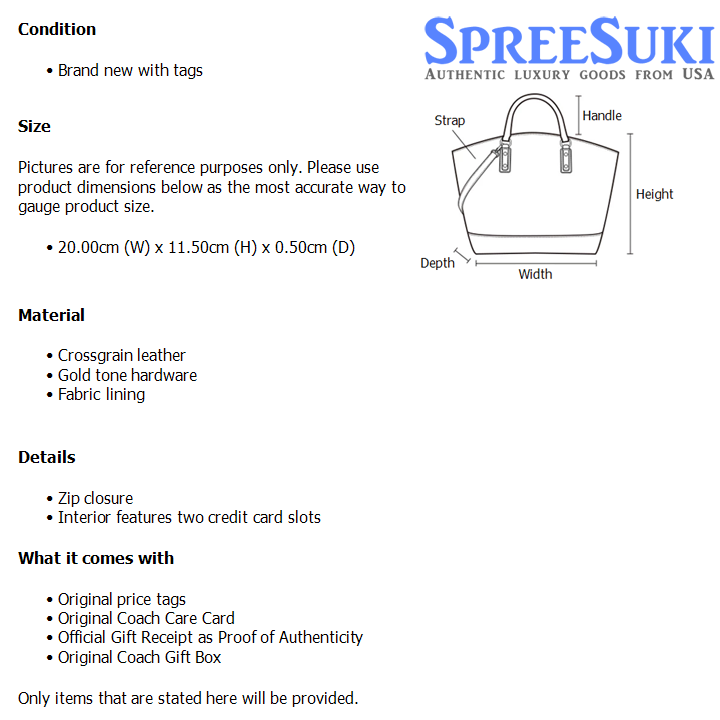 All our products are 100% authentic and purchased from Coach stores in USA. We are a reputable registered business in Singapore and it is illegal to sell counterfeit goods in Singapore. This product also comes with a gift receipt which is printed by the Coach store that we purchased the item from. It states the item that we purchased and the Coach store that it was purchased from, proving the authenticity of the item. Buy with confidence.