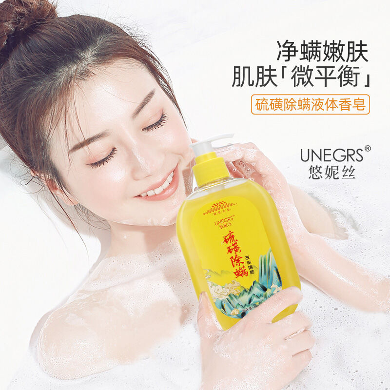 Sulfur Mites Liquid Soap Fragrance Lasting Men's and Women's Face Washing Bath Cleansing Sulfur Antibacterial Soap Shower Gel