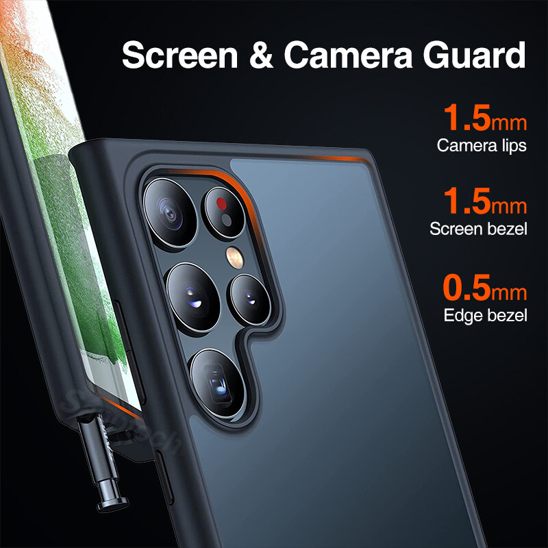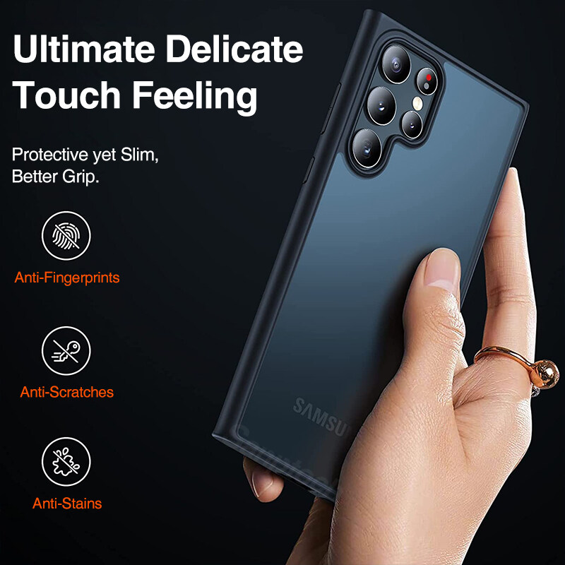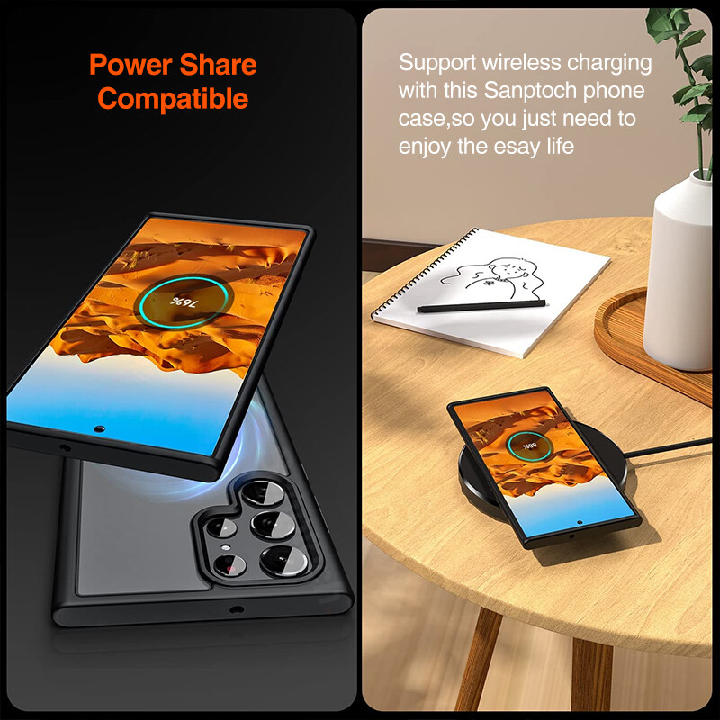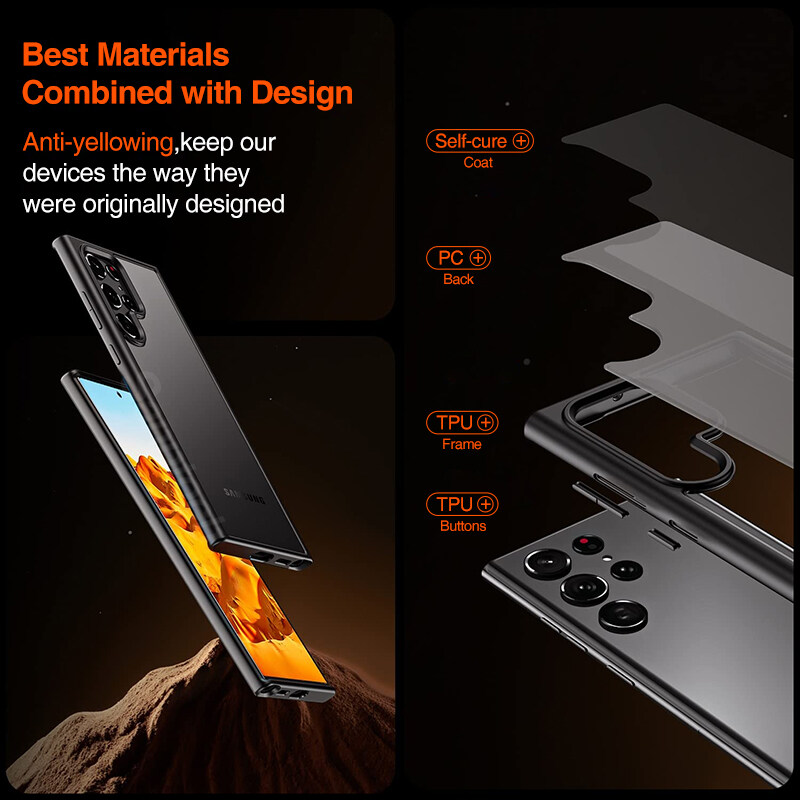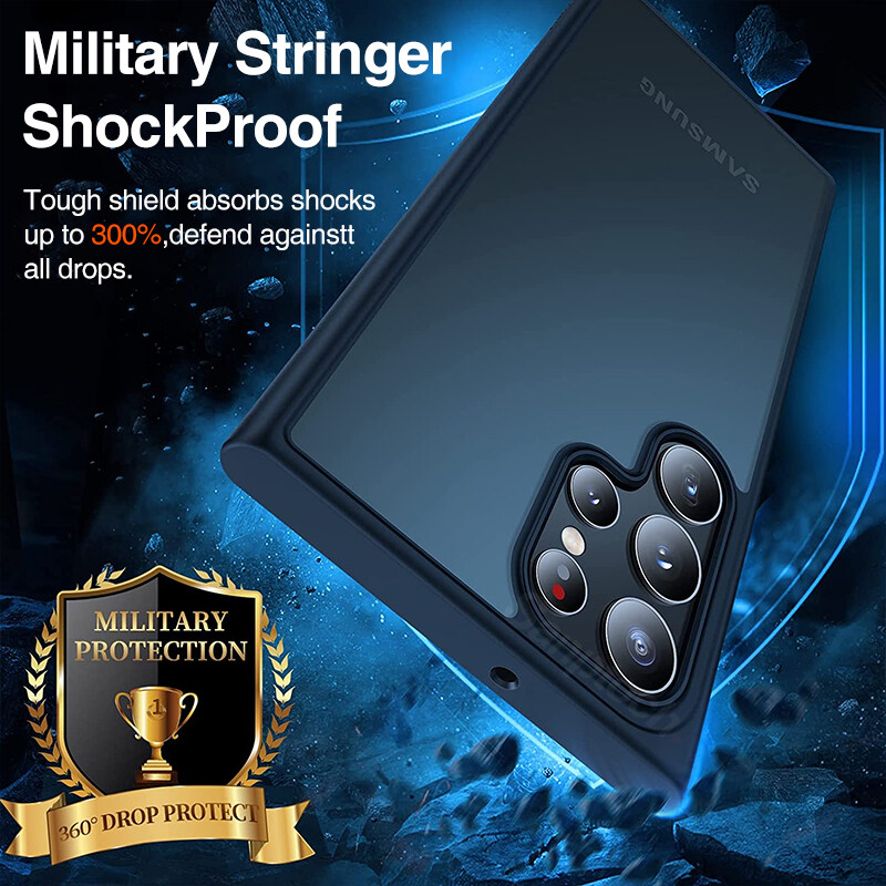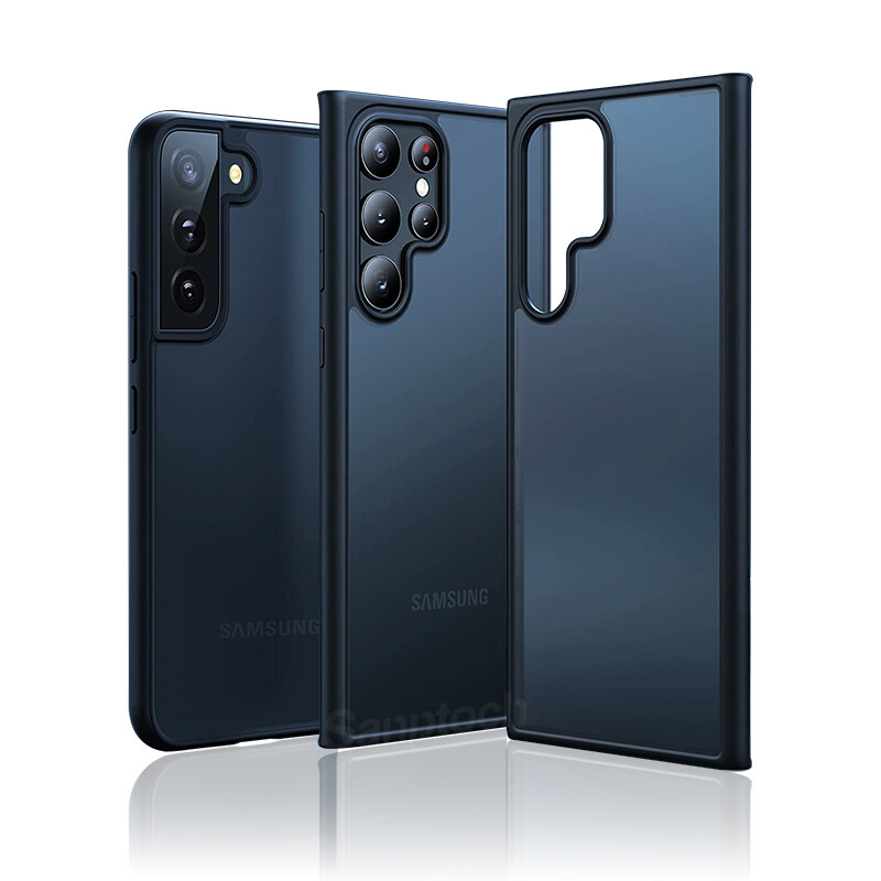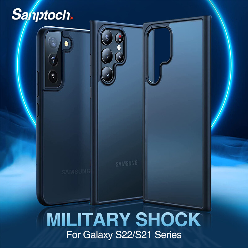 Sanptoch Military Shockproof Phone Case For Samsung Galaxy S22 / S22+ / S22 Ultra Translucent Matte Cover For Galaxy S21 / S21 Plus / S21 Ultra 5G Hard Back + Soft Edge Slim Protective Casing - Black