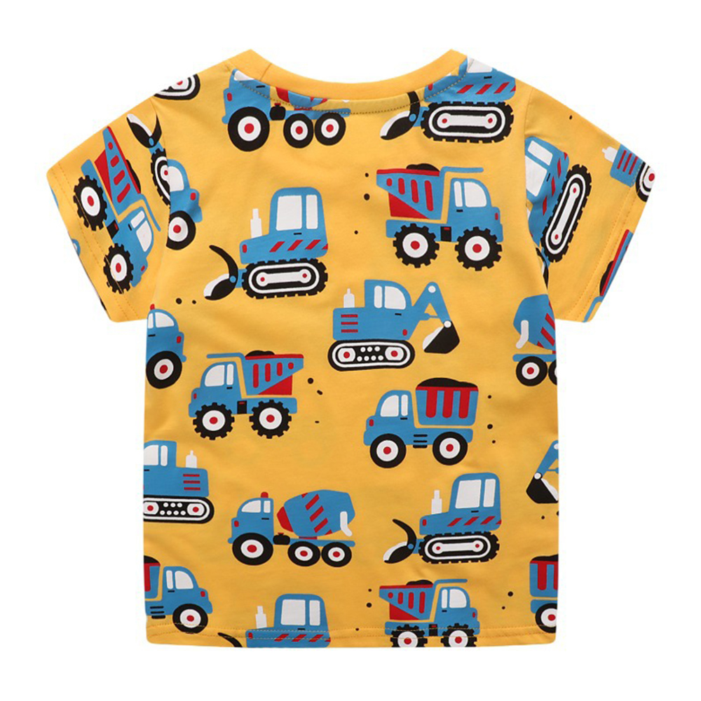 Summer New Arrival Kids Boys Tshirts Cartoon Excavator Bulldozer Prints Children T-shirts 1-7 Years