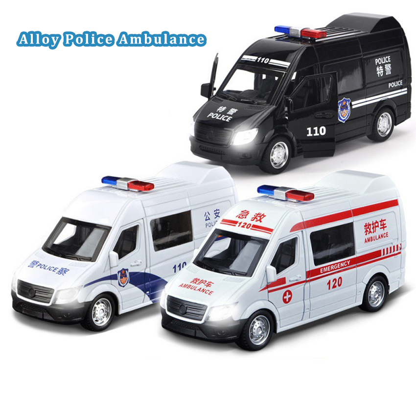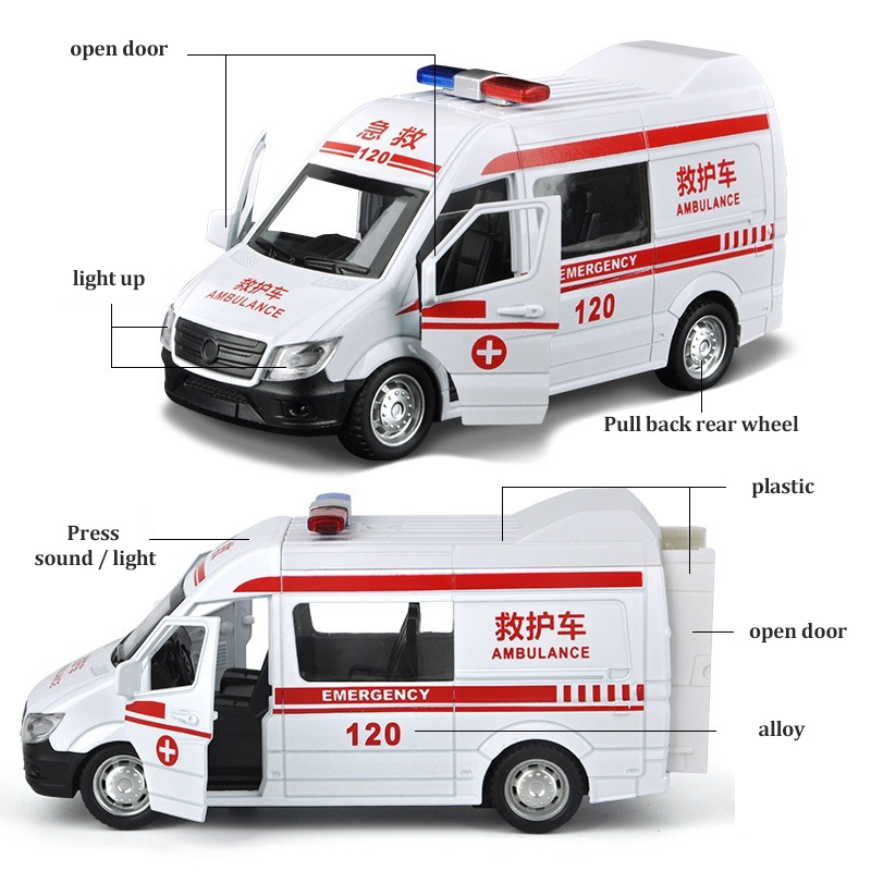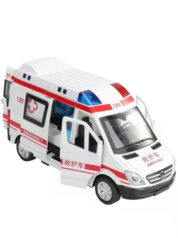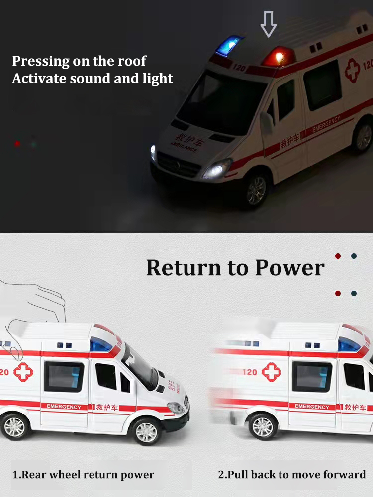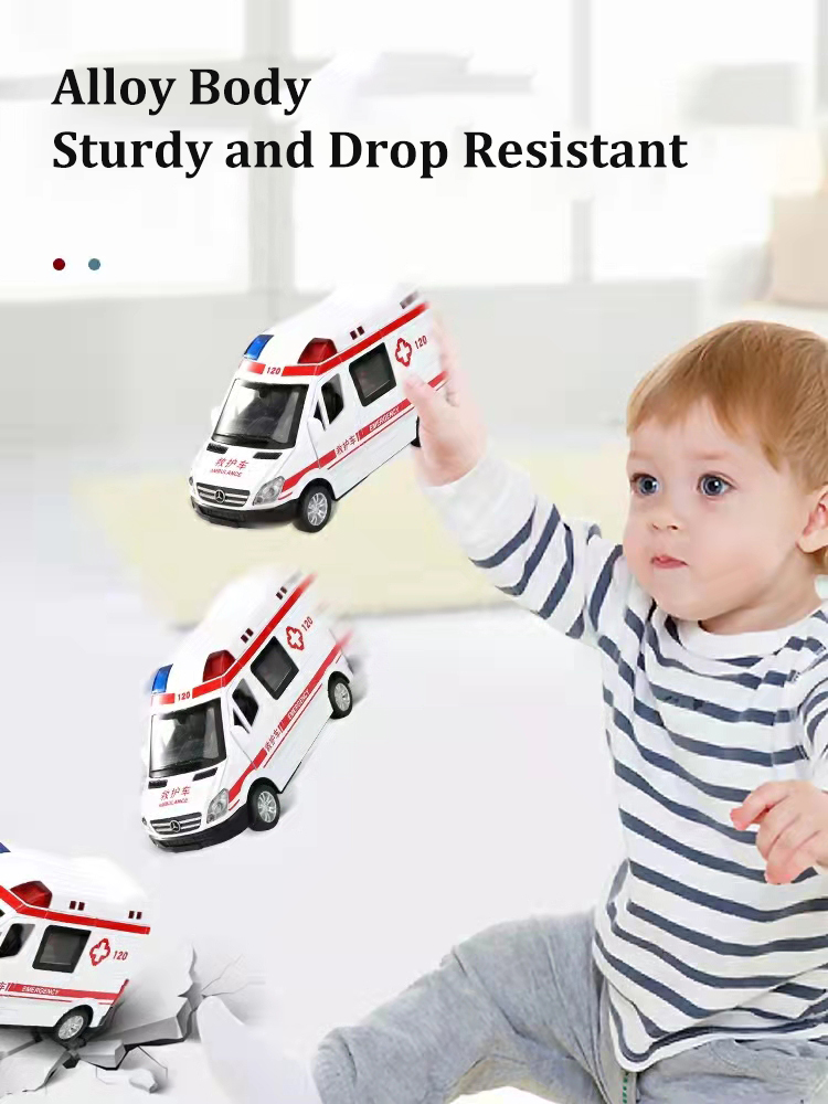 Meettoy Children's Alloy Emergency Ambulance Toy With Sound And Light Pull Back Can Open The Door Cars for Baby Boys Girls Birthday Christmas Gifts