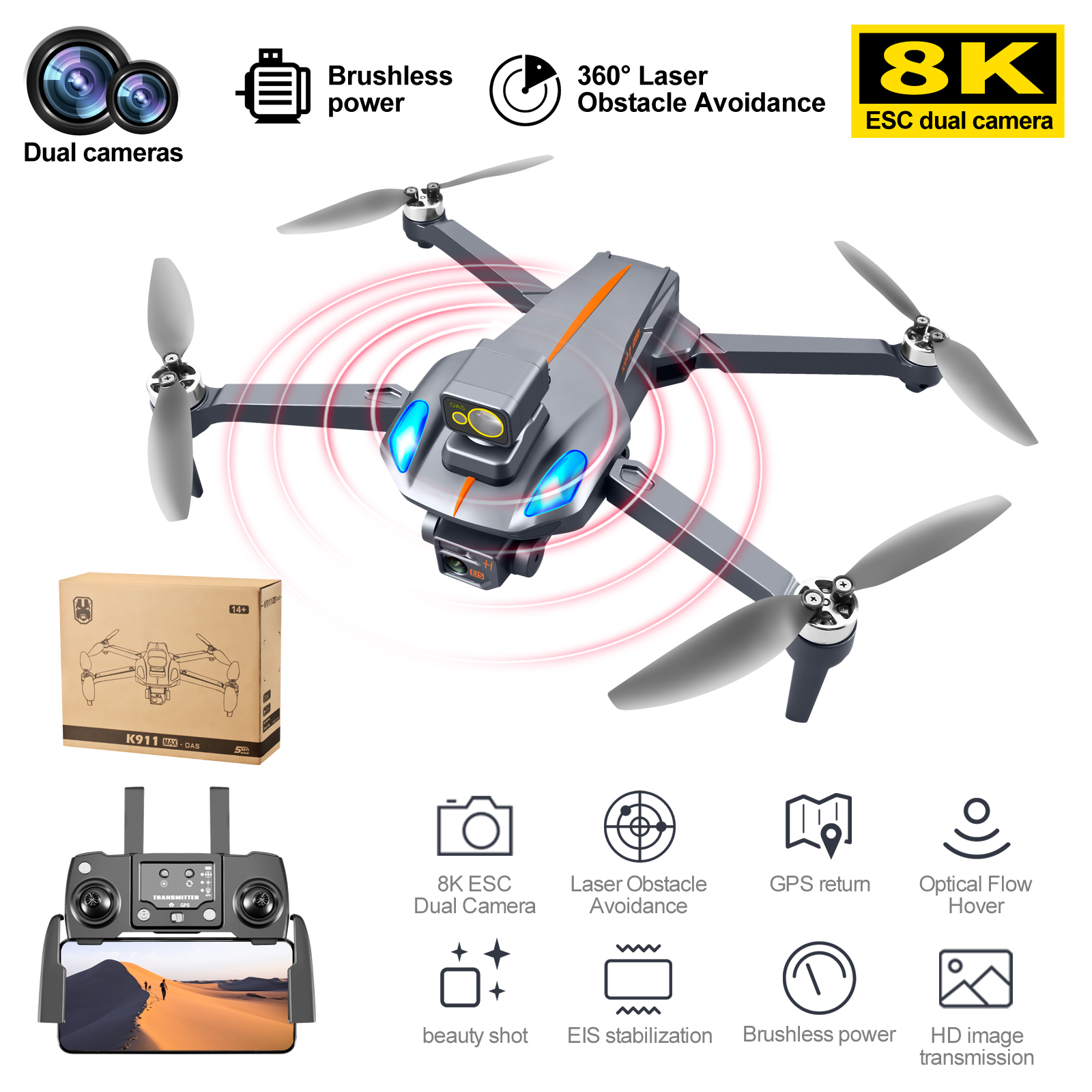 Tongjia K911 super drone 5G (brushless motor) two-axis gimbal GPS one-key home point low power return no signal return GPS intelligent follow 30 degrees down 60 degrees adjustable camera video drone f