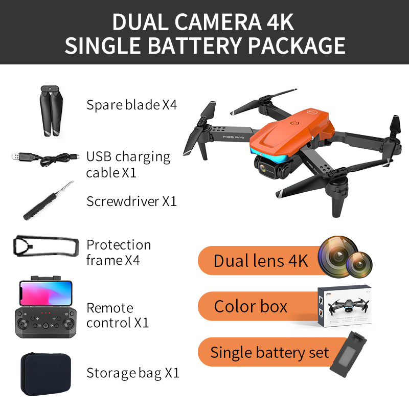 Tongjia F189PRO drone with camera, remote control four-axis drone, with 4k high-definition camera, suitable for beginners, WiFi FPV real-time video, high-altitude hover, optical flow fixed height, one