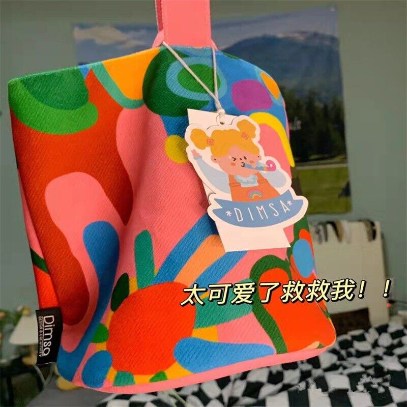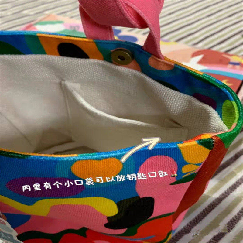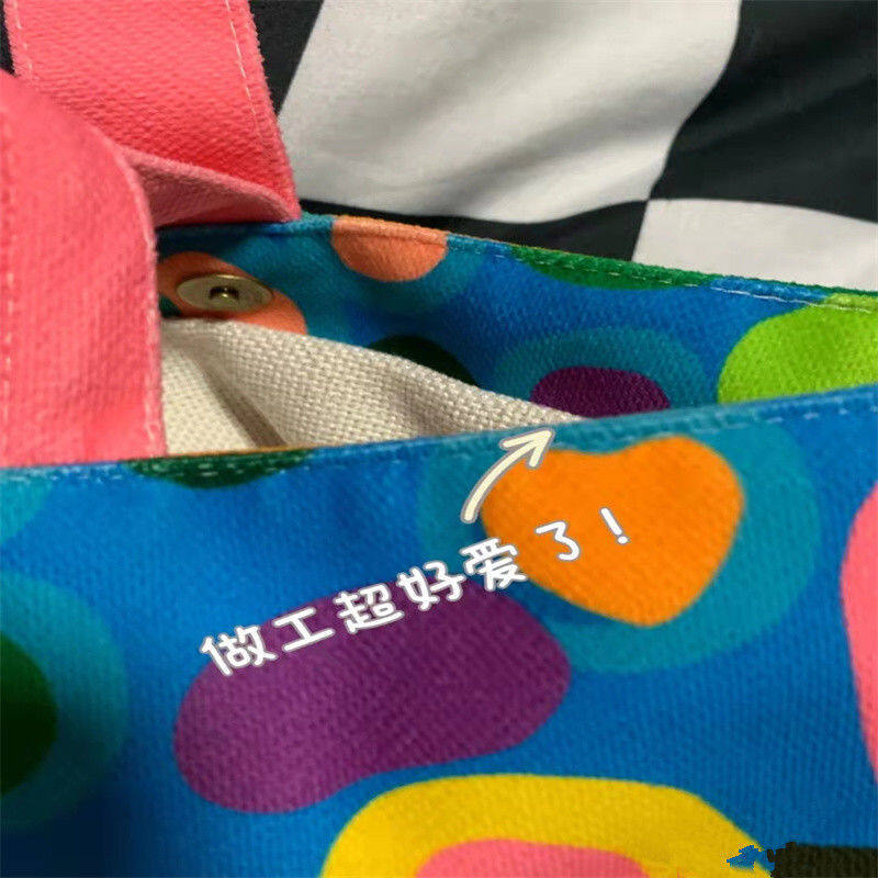 Women canvas Cotton Bucket Shaped Shoulder Bag Magnetic Buckle Tote Female Animal Cartoon Pattern Hand Carry Canvas Bags