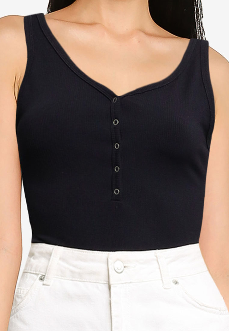 - Solid tone ribbed henley style bodysuit- Sizing runs one size larger- V-neckline- Slim fit- Button fastening- Nylon blend- Model wears an S and is 174cm tall
