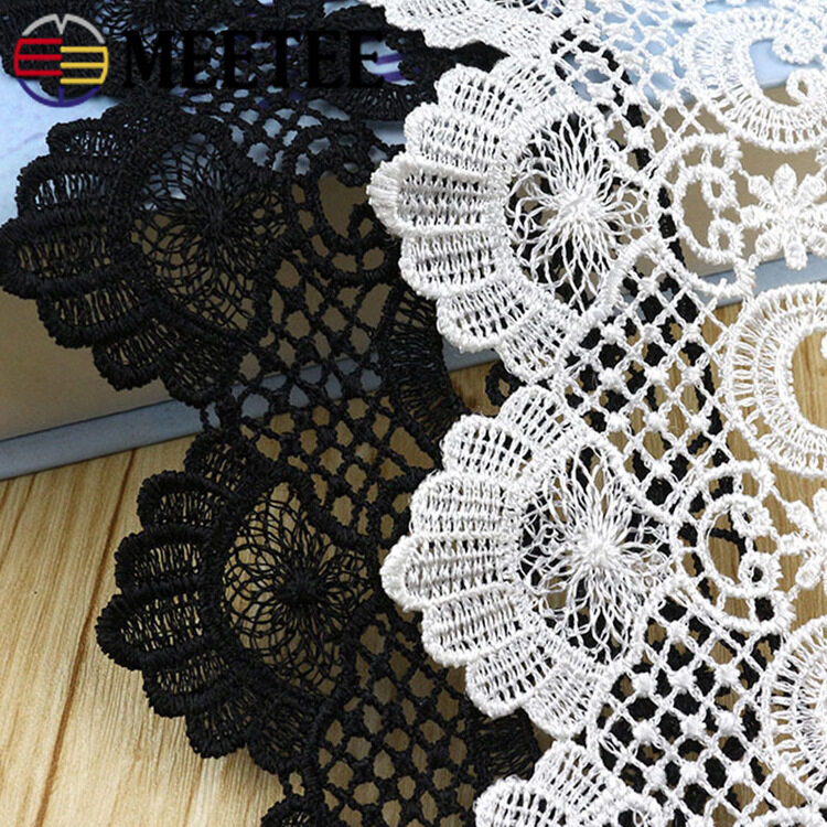 1Meter White Black Embroidery Lace Ribbon Sewing Dress Decor Skirt Clothes Wedding Trim Fabric