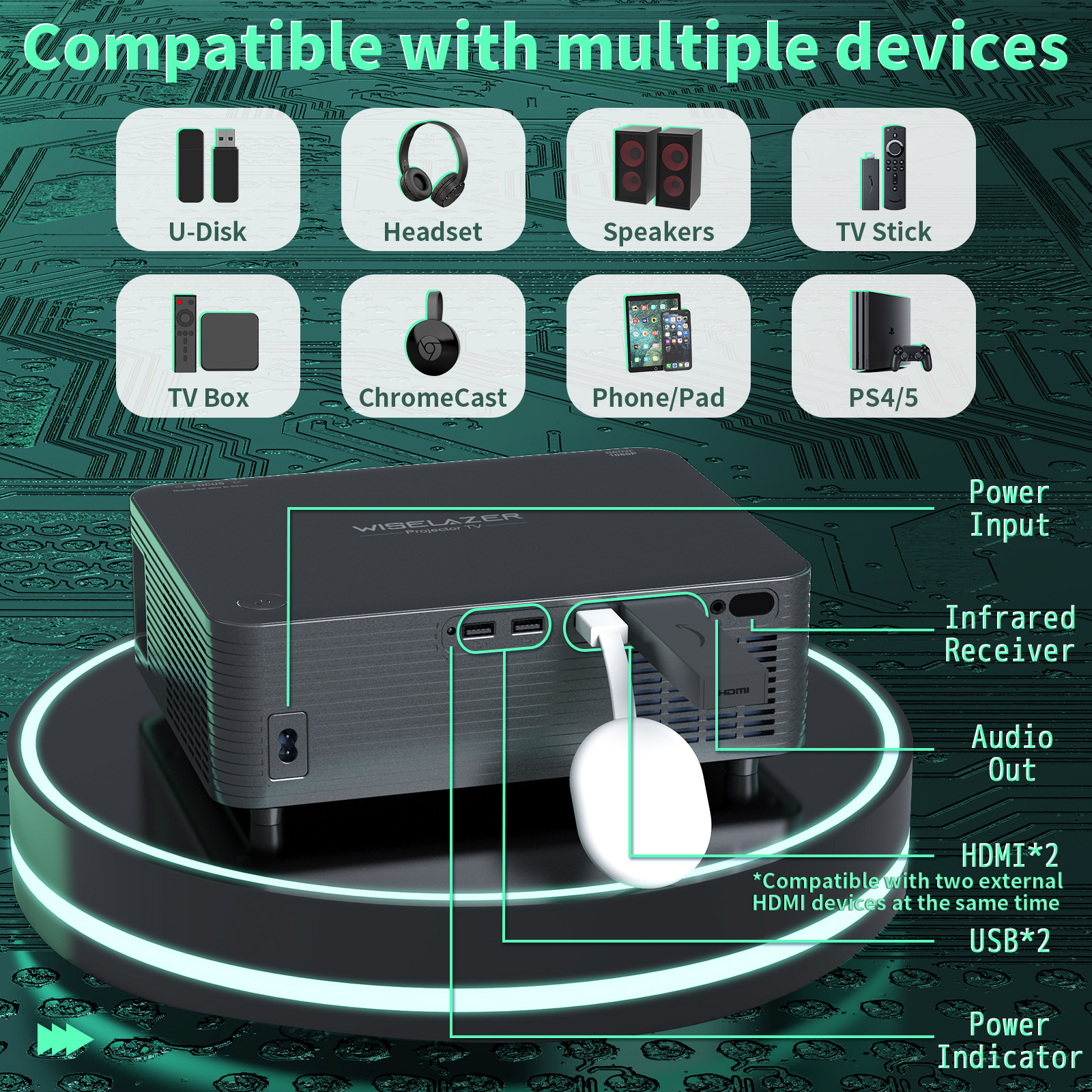 AN10 WiFi 3D 4K Portable Projector 8000 Lumens 1080P HD LED Projector for Mobile Phone Home Theater Wireless Projector Video Movie Party