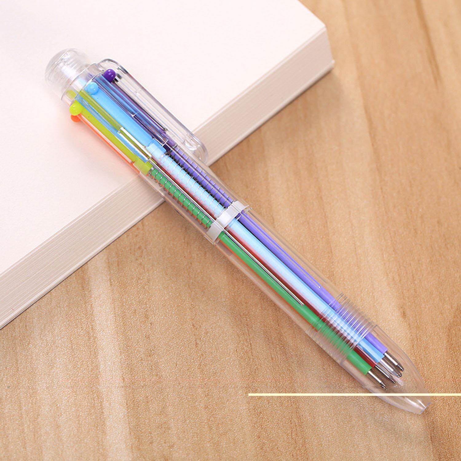 Elek 10 PCS 6 in 1 Multicolor Retractable Ballpoint Rollerball Pens Ballpens for Office School Supplies Students Kids Gift
