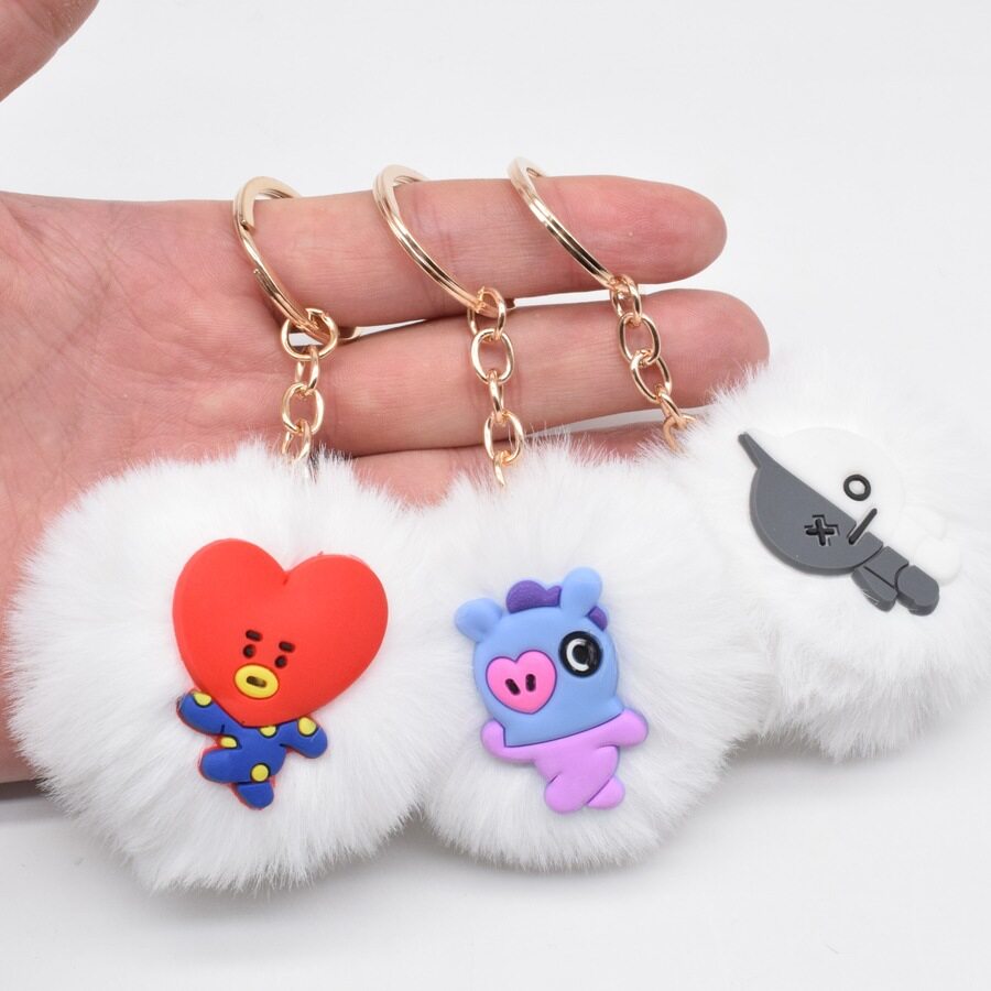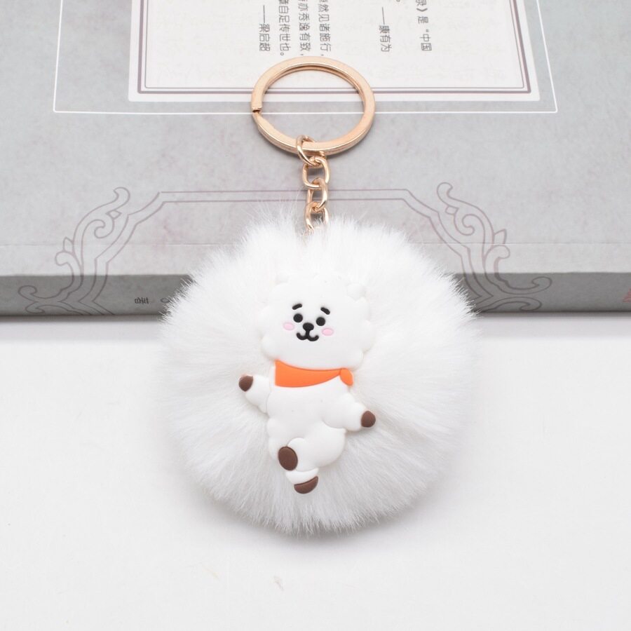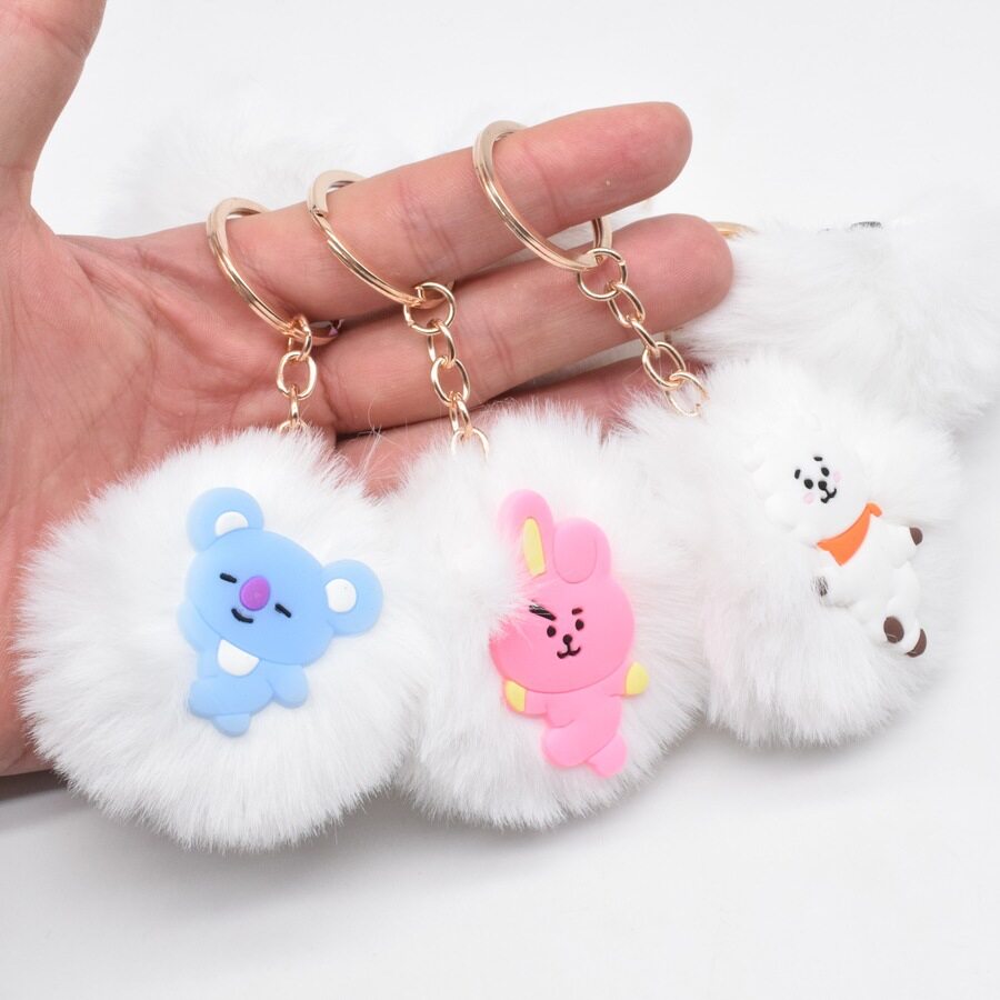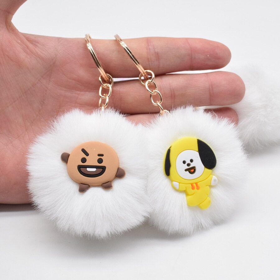 BTS BT21 Commodity Official Accessories Cell Phone Ornaments Hairball Car Keychain Cute Soft Toy