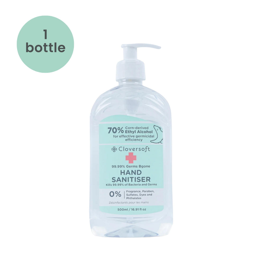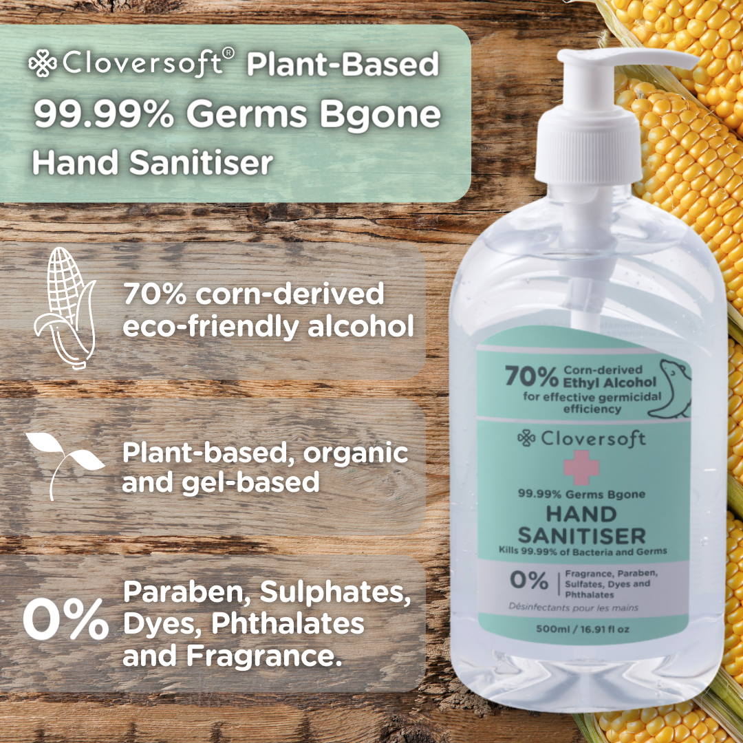 Cloversoft Plant-Based Hand Sanitizer 500ml 99.99% Germs Bgone Gel-based Eco-friendly Corn Derived Alcohol Gentle Refill, Special Promo Carton Deal