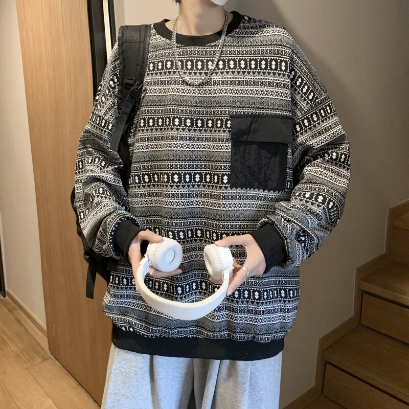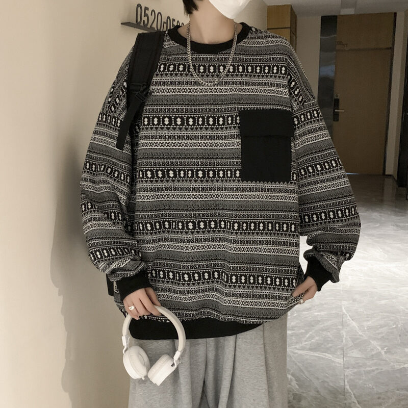 Retro Sweater for Boys Oversize Hong Kong Style Loose Fashion Brand High Street Top Design Sense Spring and Autumn T-shirt Long Sleeve