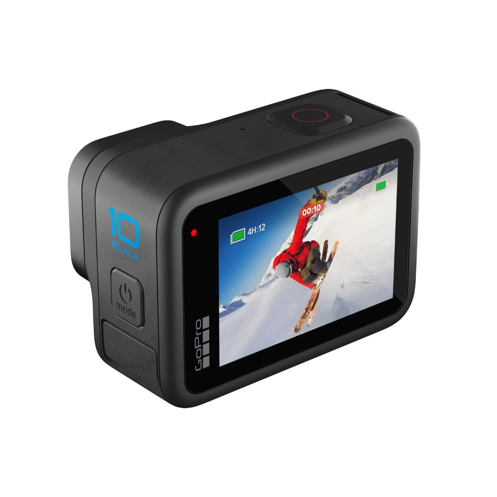 Speed and ease of use GoPro is the most powerful, fast and easy to use ever. Powered by an innovative new GP2 processor, you can shoot 5.3K video at twice the frame rate as before, or take 23MP photos. It also supports HyperSmooth 4.0 video stabilization in all modes and improves low-light performance. In addition, the HERO10 is cloud-connected, and content is automatically uploaded to the cloud while the camera is charged. PRODUCT DETAILS All-New GP2 Processor Makes GoPro the Strongest Camera Ever Seen Amazing 5.3K60 + 4K120 video resolution and 23MP photos State-of-the-art HyperSmooth 4.0 video stabilization Waterproof performance up to 10m and tough design Auto-upload content to the cloud while charging TimeWarp 3.0, 8x slow motion and more make every shot perfect Compatible with Quik apps Compatible with more than 30 mounts and accessories