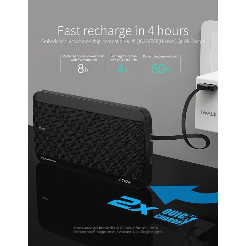 iWalk Scorpion Powerbank 12000mah Built in PD (Power Delivery) with Type-C Cable IP Cable Micro USB Cable