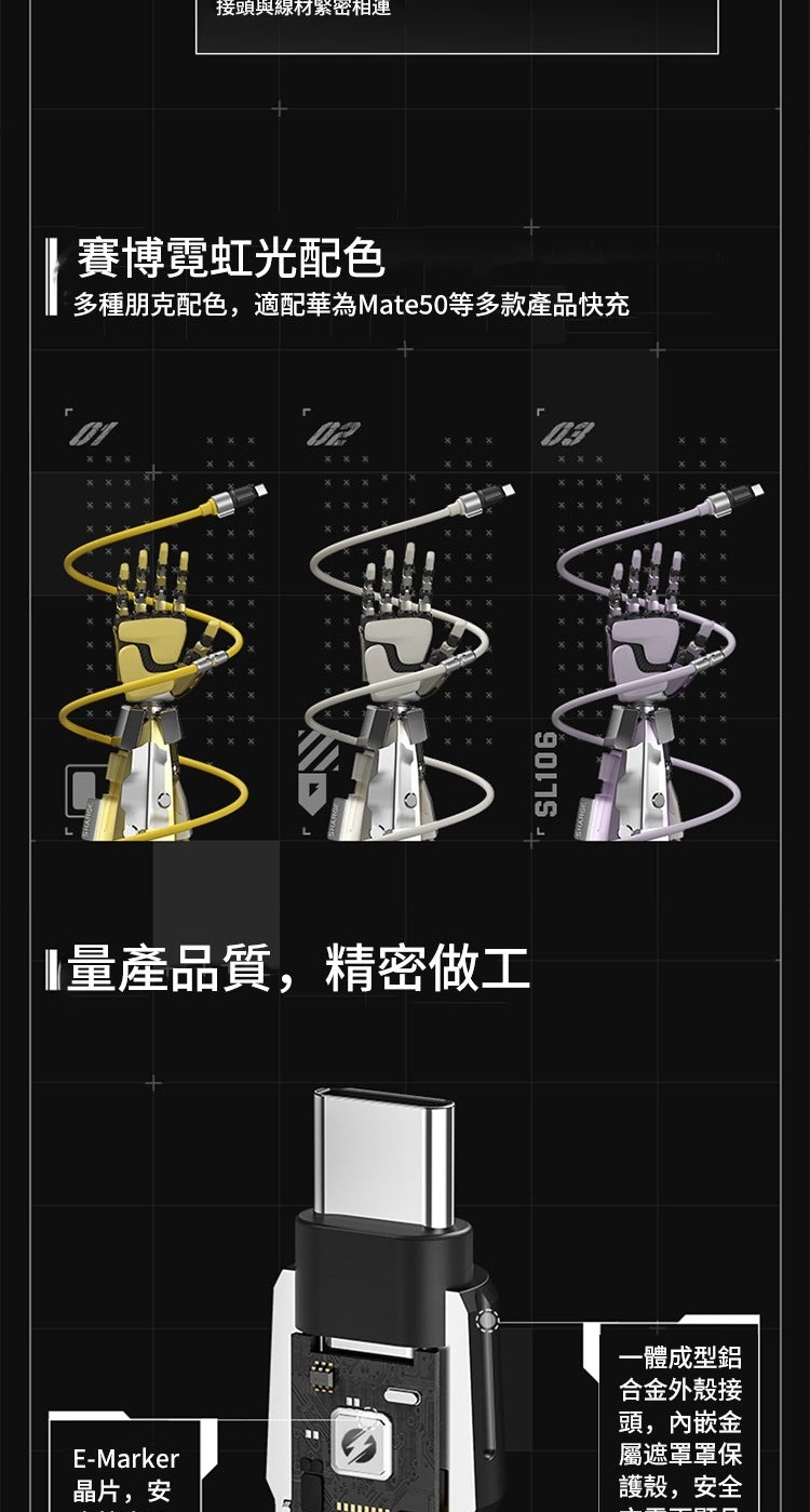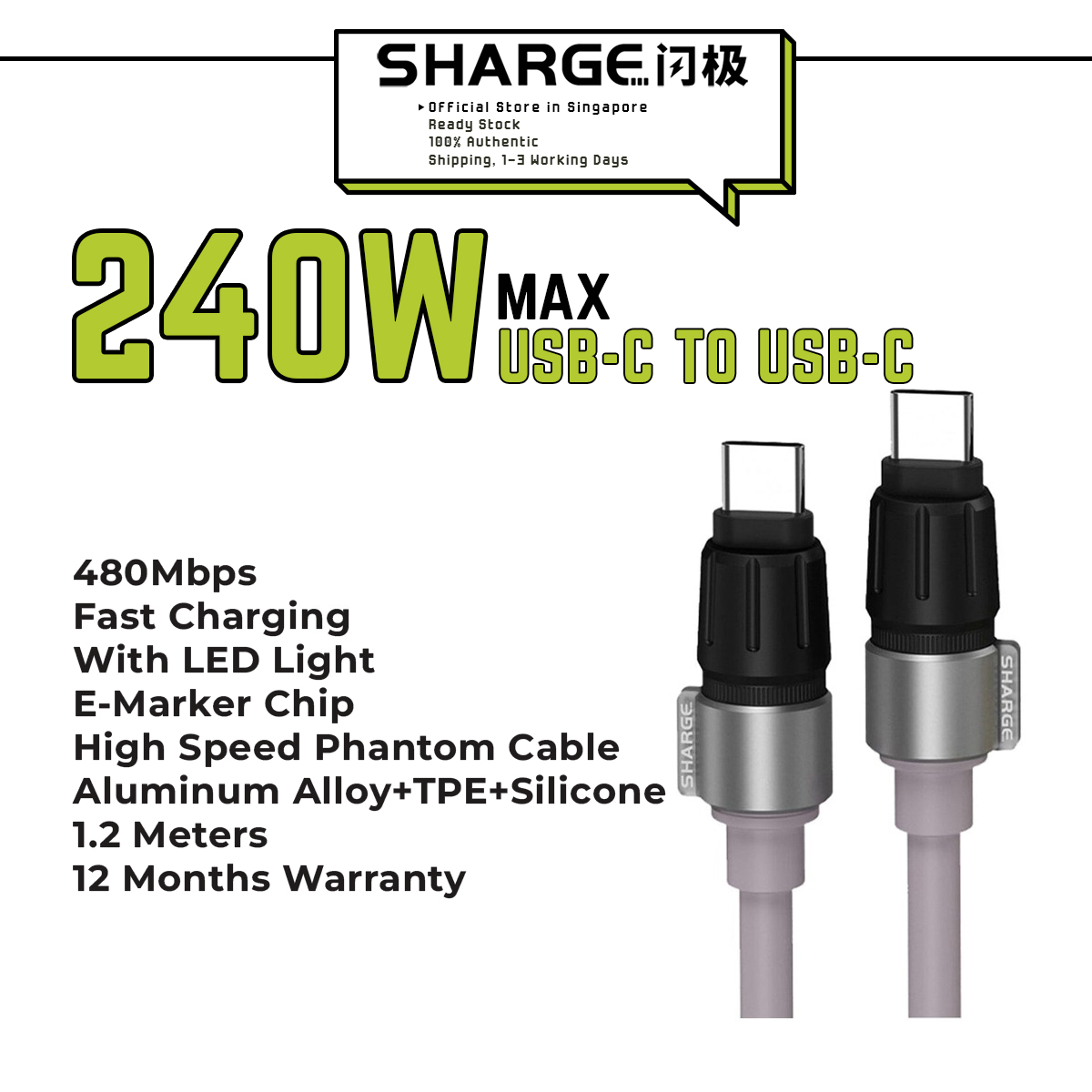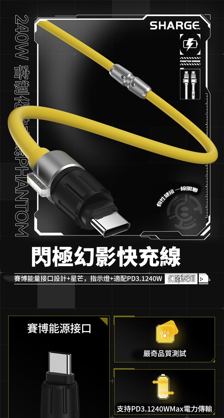 • Shargeek SL106 240W USB-C to USB-C High Speed Phantom Cable 1.2m E-Marker Chip with LED Light