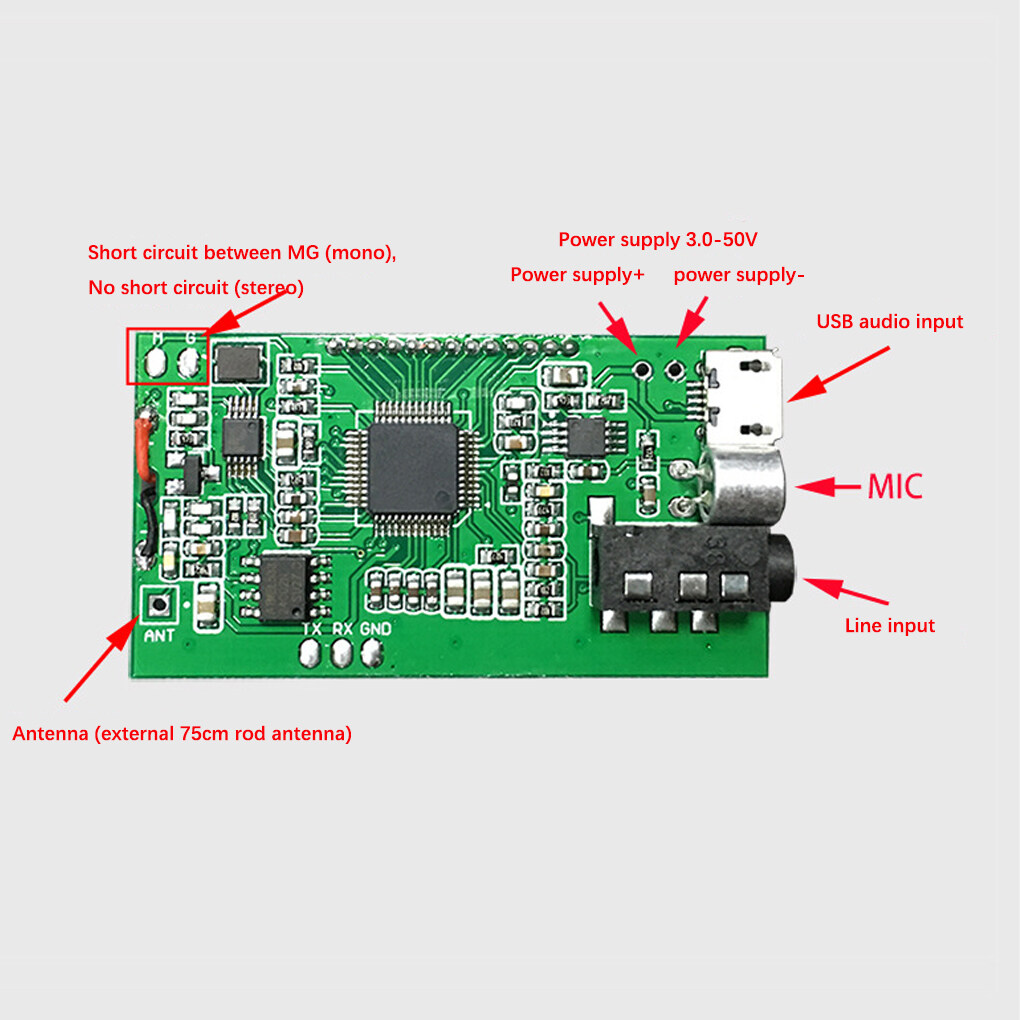DC 3V-5V DSP PLL 87-108MHz Digital Display Adjustable Transmitter Module Replacement Wireless Microphone Board