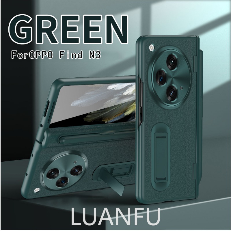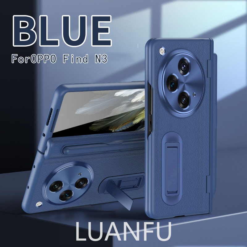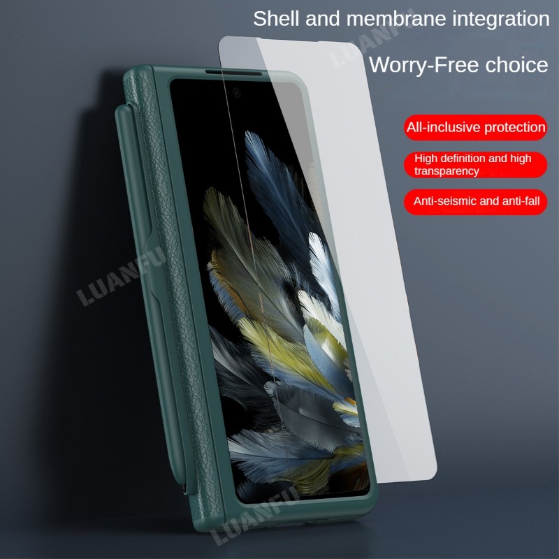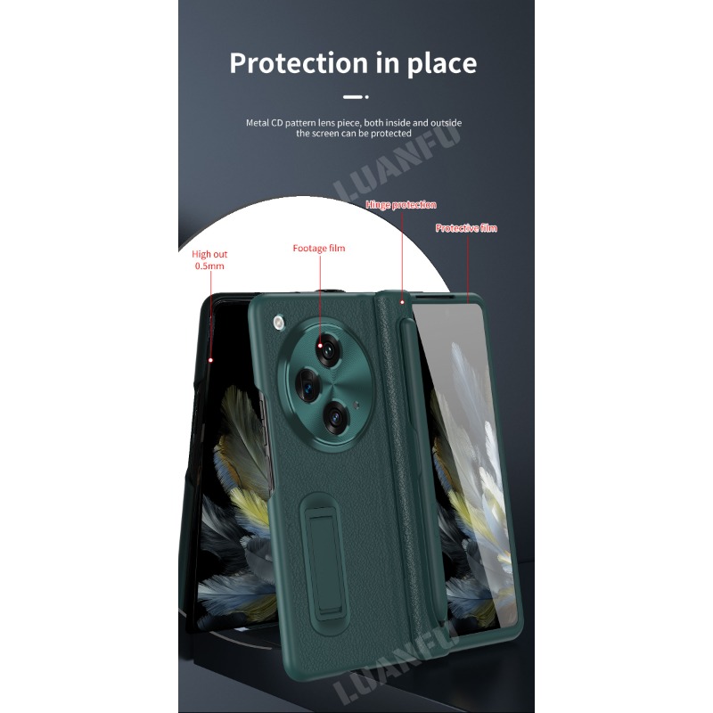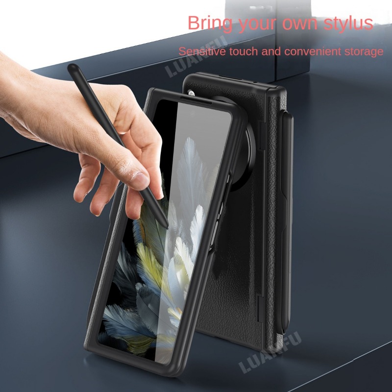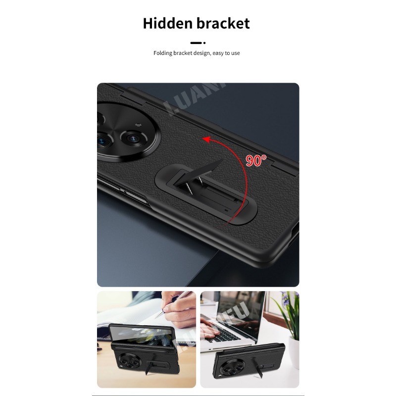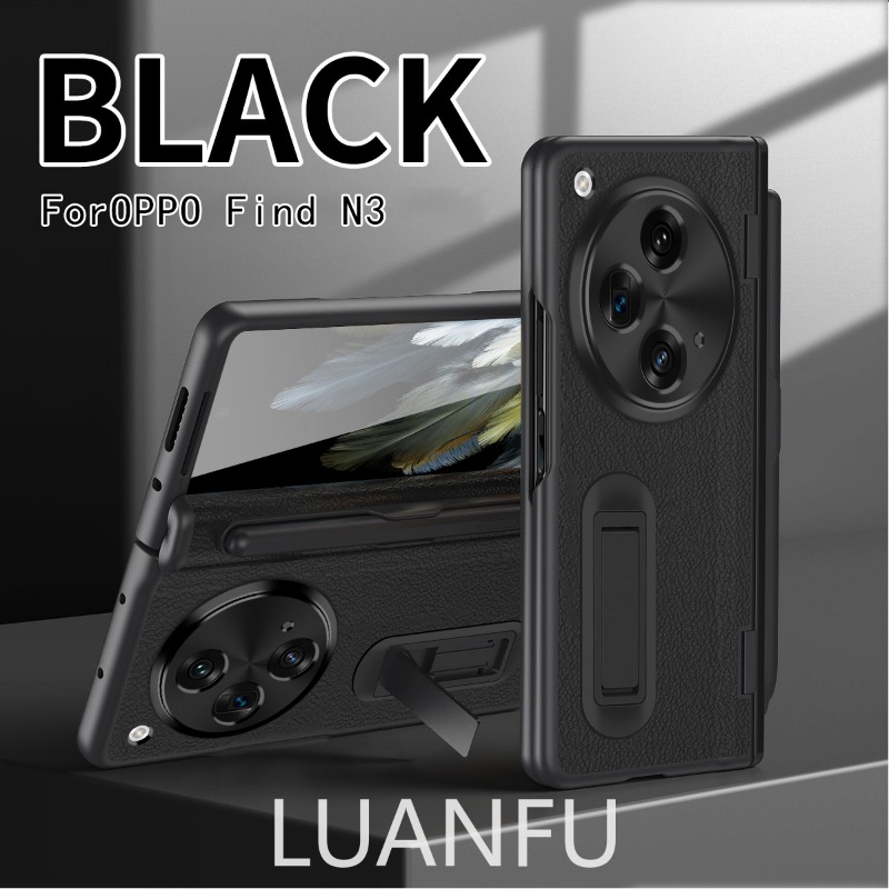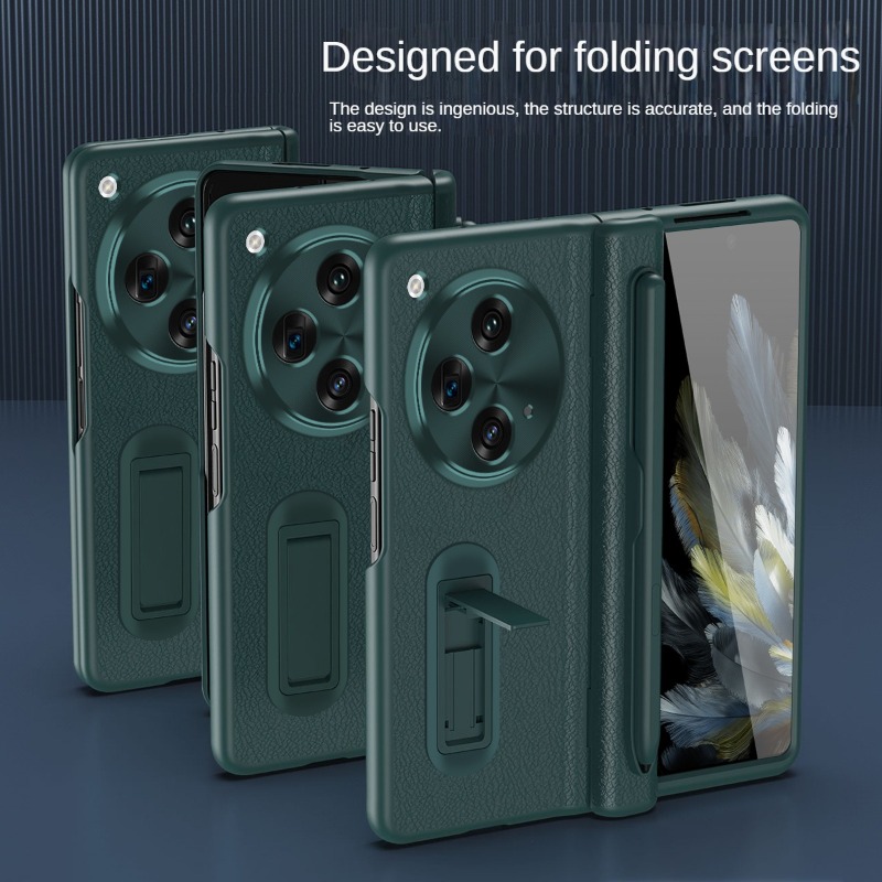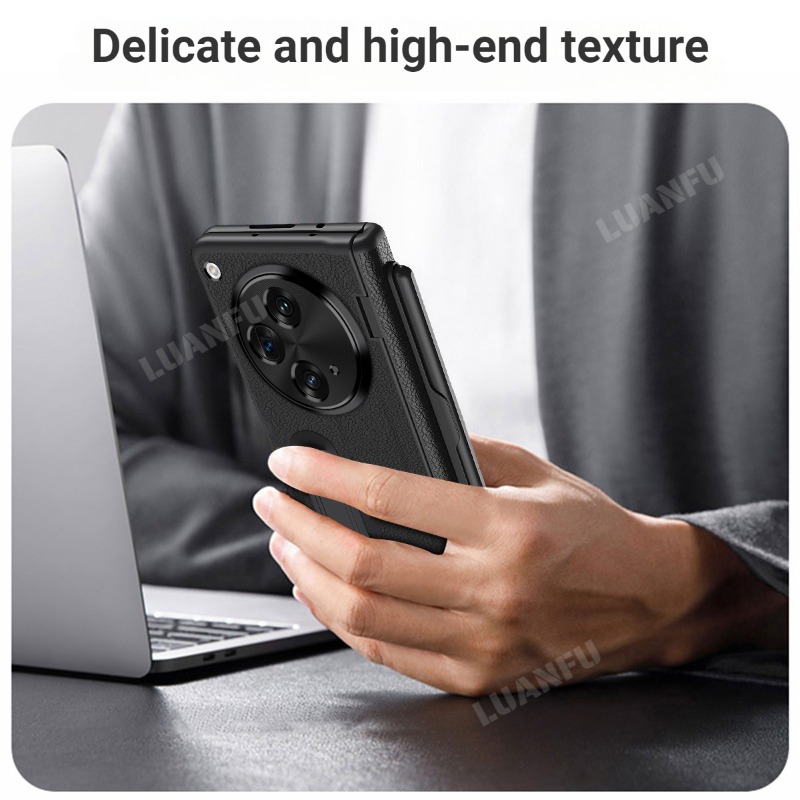 Case for Oppo Find N3 / OnePlus Open High-end Business Leather Hinge All-inclusive Protective Case with Pen Slot and S Pen HD Tempered Film Hidden Bracket Design Drop-proof and Shockproof Phone Case