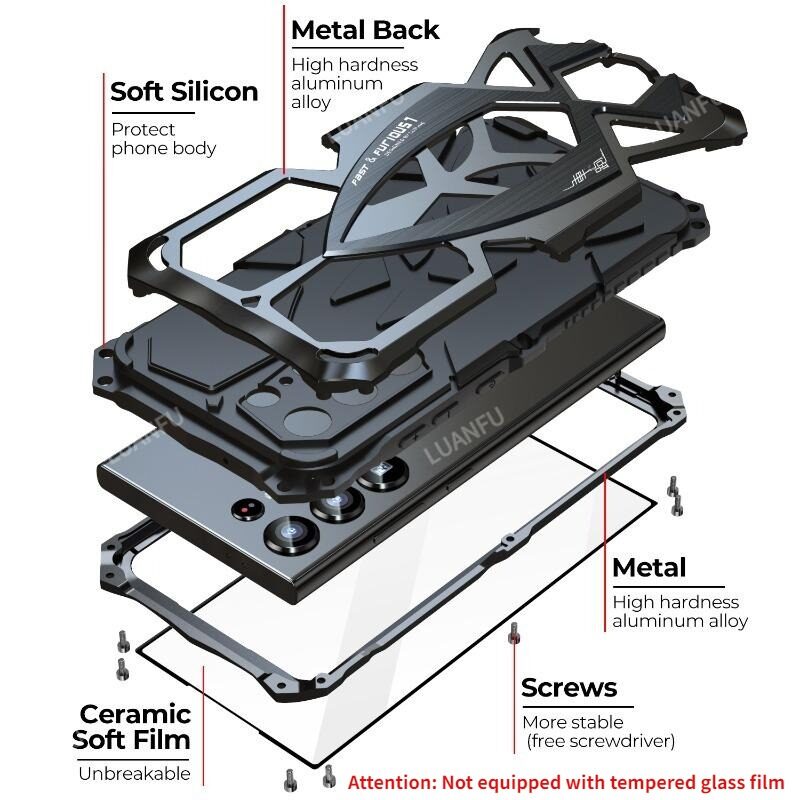 Case for Samsung Galaxy S23 Ultra / S24 Ultra / S22 Ultra Explosion-proof All-inclusive Protective Shell Sports Car Design Mechanical Feel High Hardness Aluminum Alloy Scratch-proof Anti-drop Shockpro