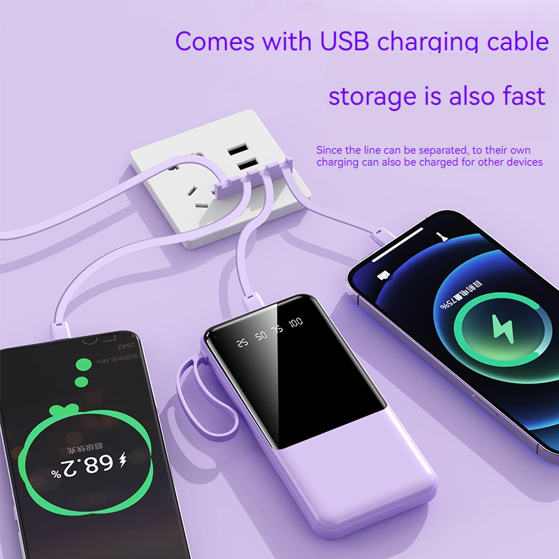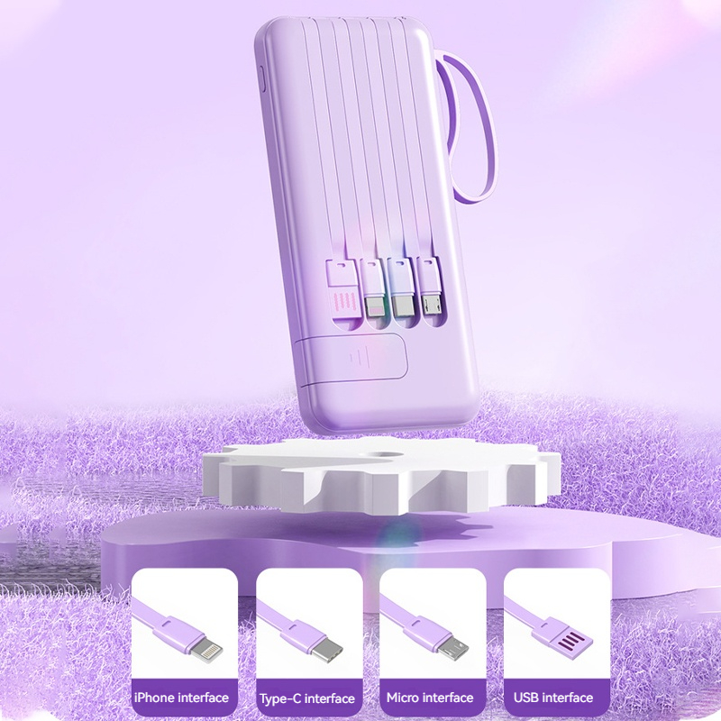 Function: Dual USB+Micro/Type-C input+detachable built-in 4-wire+phone holder