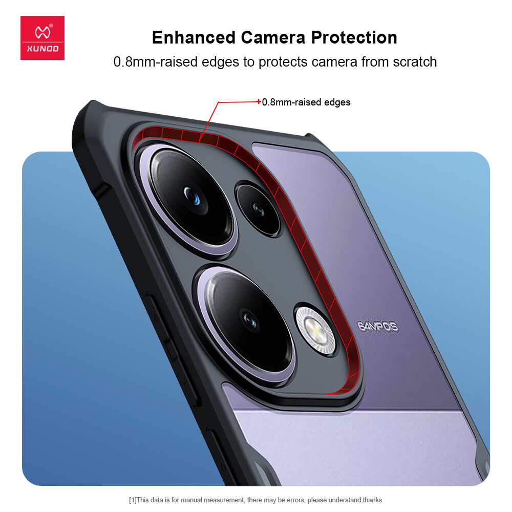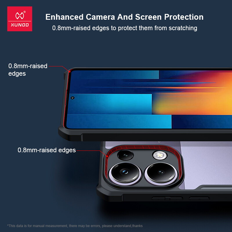 0.8mm raised edge to avoid the precious camera lens of the mobile phone, and the screen, so as not to be easily scratched, upgrade the whole lens package, design of the buffer suspension between the lens and the whole package, anti-drop laboratory feedback more secure, and lens gap structure around the whole package optimized