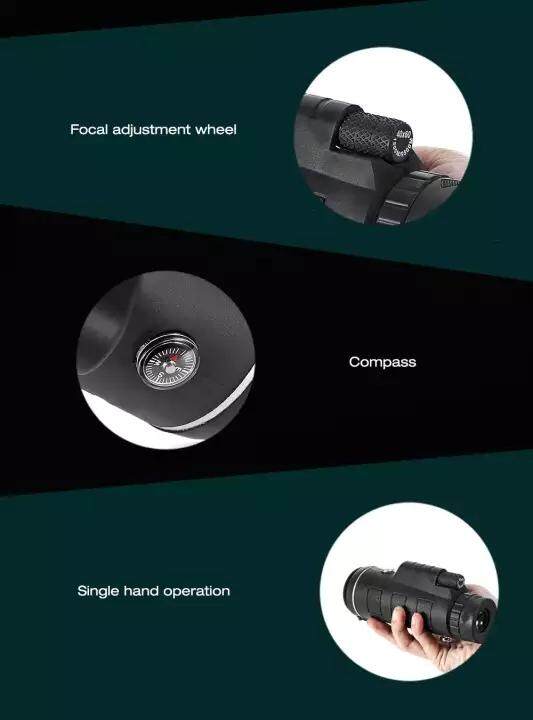 -With the compass: a compass on the monocular, never need to worry that you could be lost on the trip.