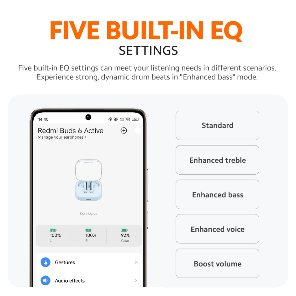 Xiaomi Redmi Buds 6 Active | TWS Earbuds | Dual-Mic Noise Reduction | 30 Hour Battery Life | Bluetooth 5.4 | IPX4 Rating