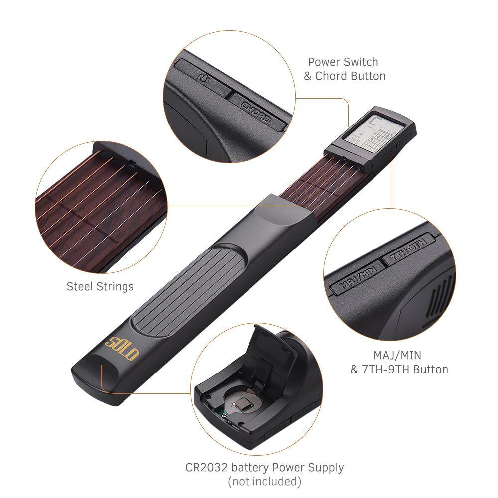 6-fret pocket guitar, a handy tool designed for guitar beginners, you can carry it around when you are traveling and practice fingering anytime anywhere.