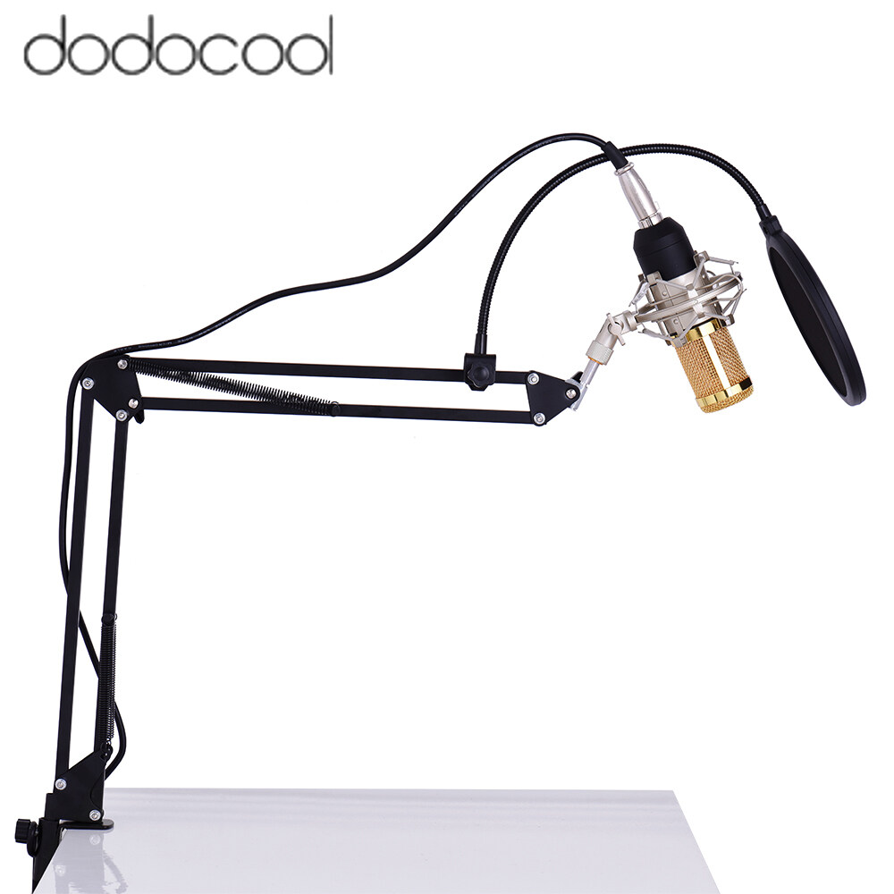dodocool Professional Studio Broadcasting Recording Condenser Microphone Mic Kit Set 3.5mm with Shock Mount Adjustable Suspension Scissor Arm Stand Mounting Clamp Pop Filter