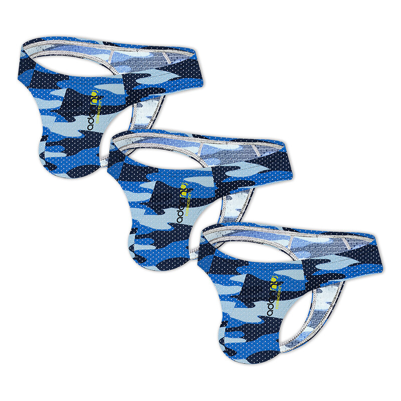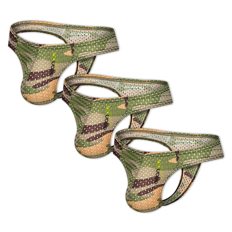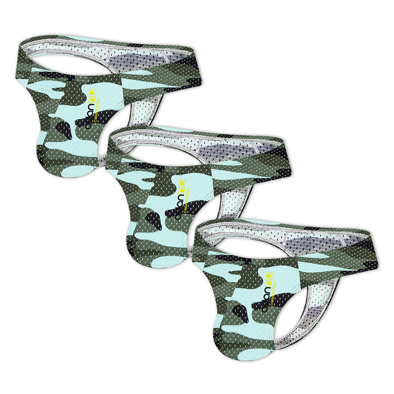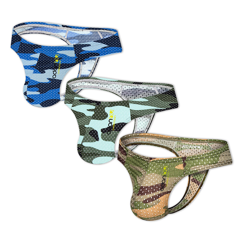 ORLVS 3Pcs Sexy Men Underwear Thongs Mesh Camouflage Breathable G String Underpants OR190
