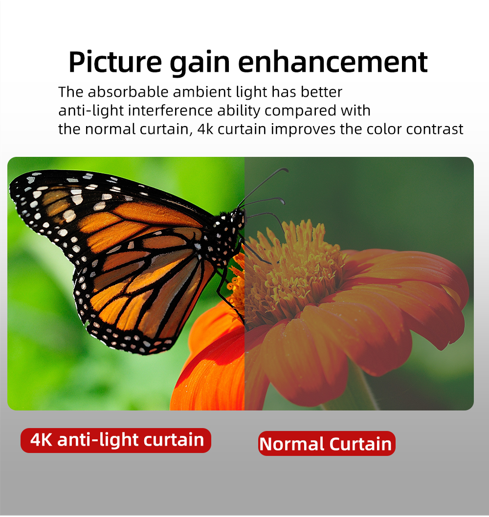 - Never Miss OUR HIGH Quality Projector Screen,It will be your projector’s best friend, start a new way of entertainment. 60/72/84/100/130/ inch HD 16:9 EXCELLENT Movie Screen made from natural polyester fabric. Different from other ordinary movie screen, this is upgraded version,grey curtain, effectively improve the projection contrast. Avoid light penetration for a clear image Screen.