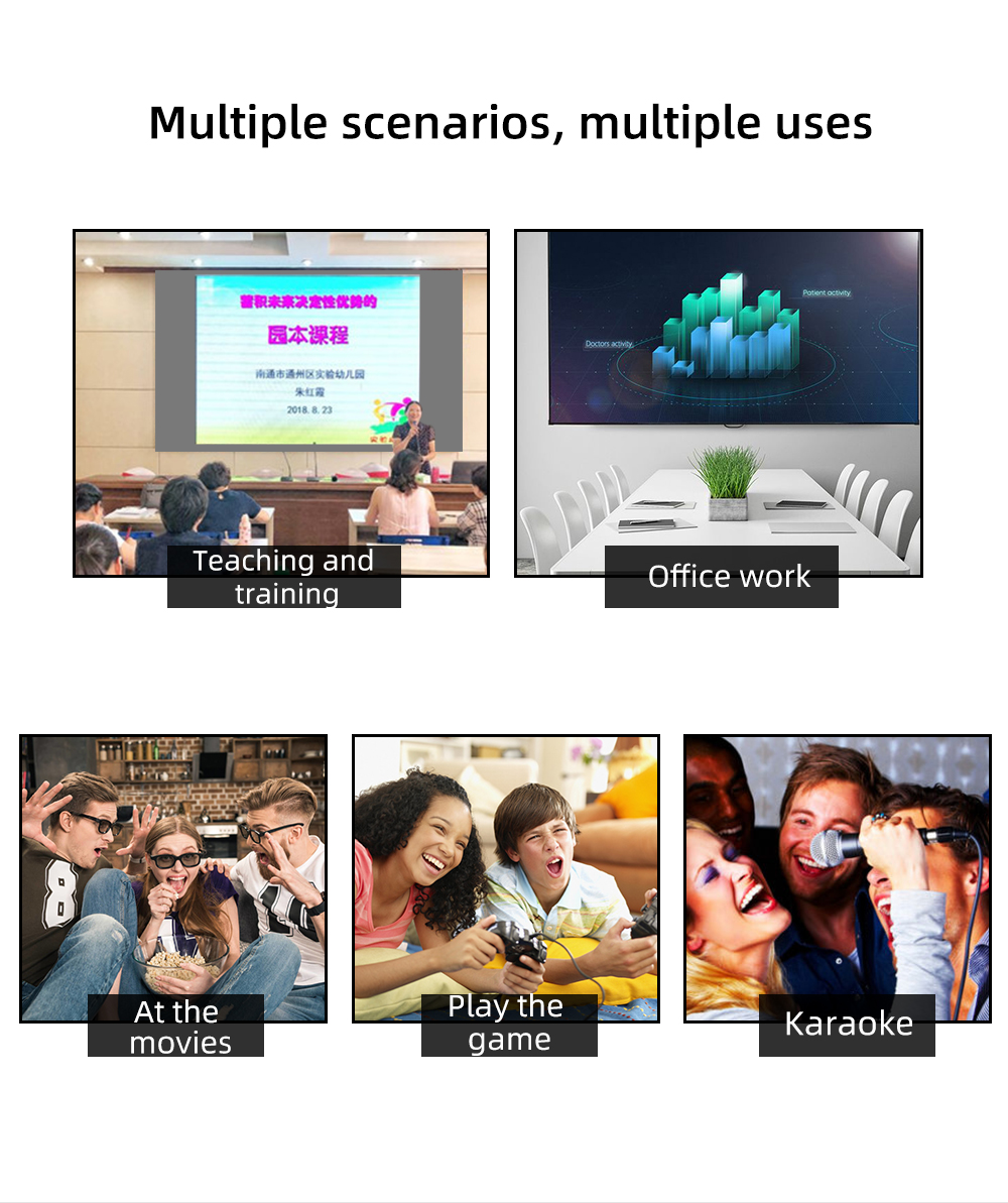 - WORK On Most Situations,Display all you want, just do it! Displaying movie, sport games, photos, music video, games, etc, it make your life more fun! Or you can present your company graphics and data on the office, sharing your photos on your propose marriage. It could be used as professionally, romantically,practically, just depends on what you need.