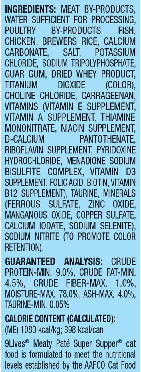 9Lives Meaty Paté Super Supper Wet Cat Food, 13 Ounce (Pack of 12)