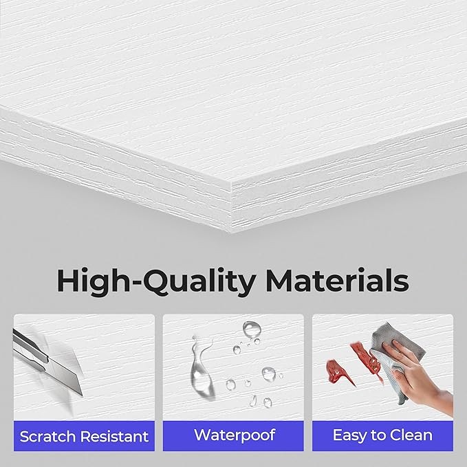 【Reversible Storage Rack】 The home office desk features a reversible storage rack that can be installed on either side, with adjustable gradients on the uppermost shelf for various item sizes, making it a versatile white table.