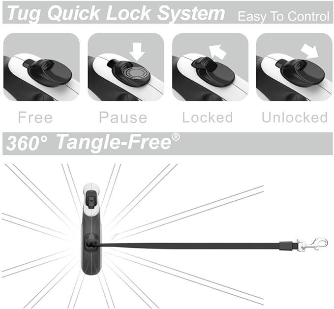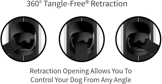 • 16 ft Tape Retractable Dog Leash With Easy-Adjust Retraction; 360 Degree Tangle-Free Inlet